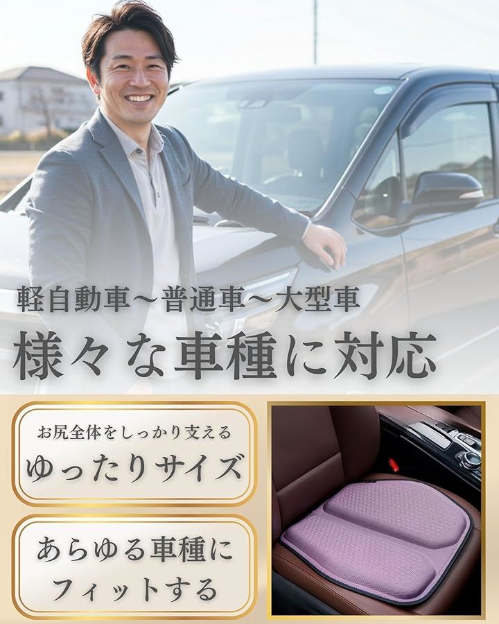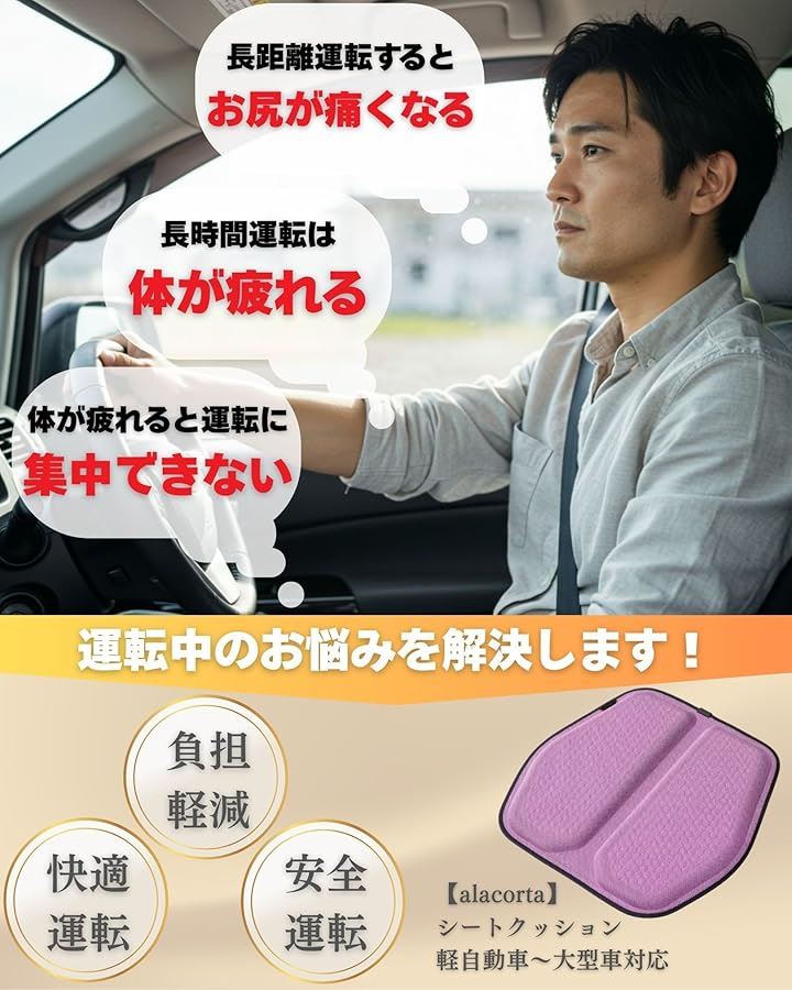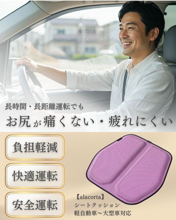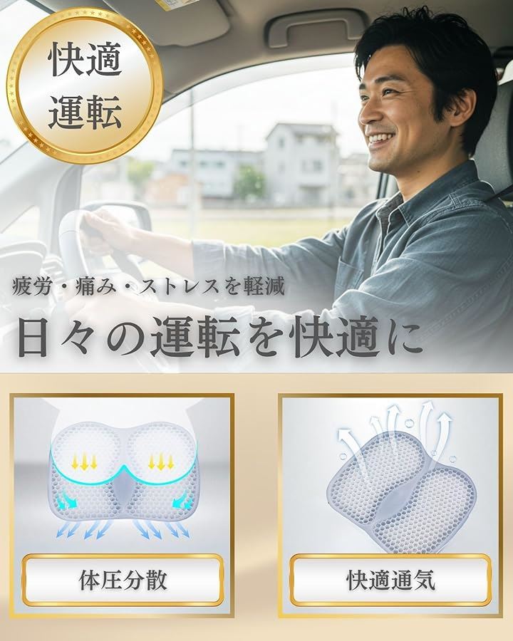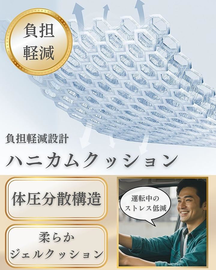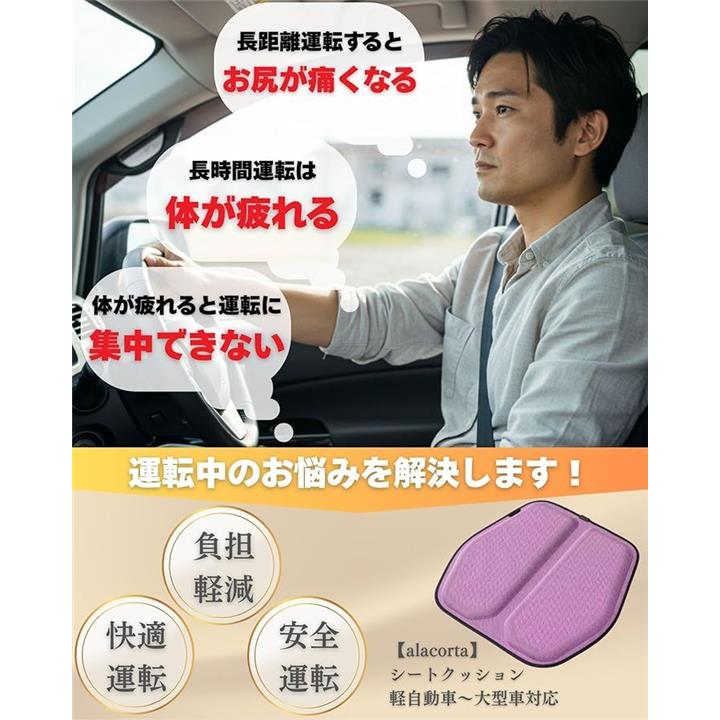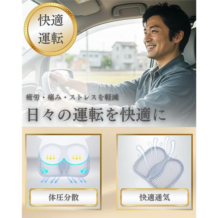 シートクッション ゲルクッション 車 運転用座布団 お尻が痛くならない 疲れにくい 軽自動車 ~ 大型車 まで対応 ハニカム構造 快適グッズ 便利グッズ 運転席 助手席 後部座席 どこでも使える 長距離 長時間 旅行 ALA-009