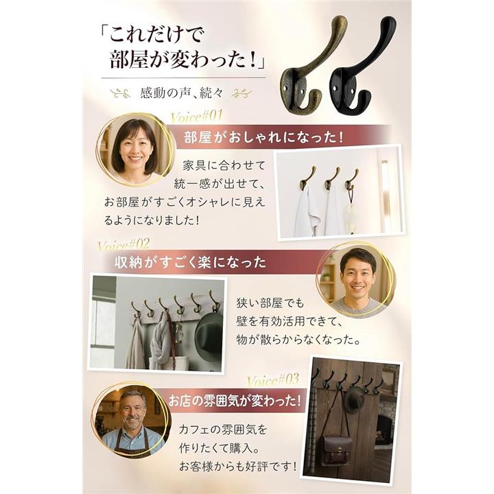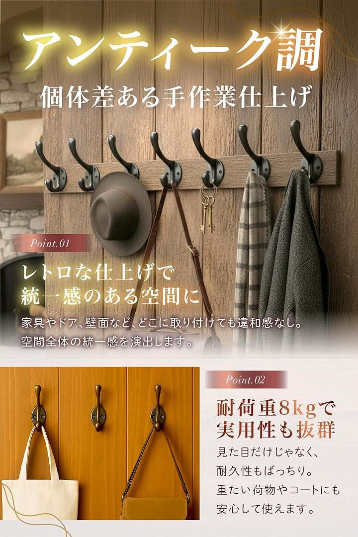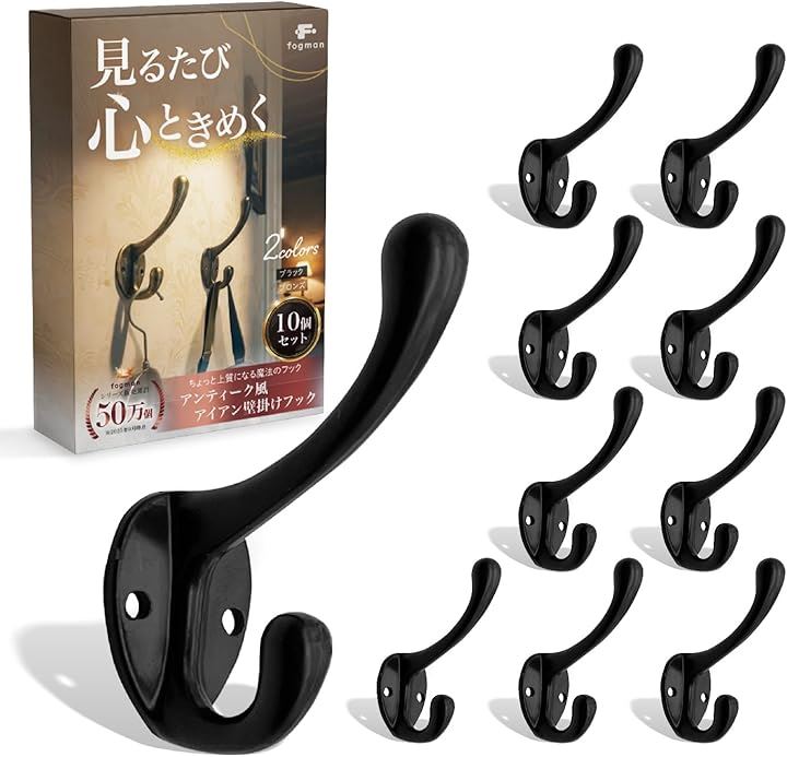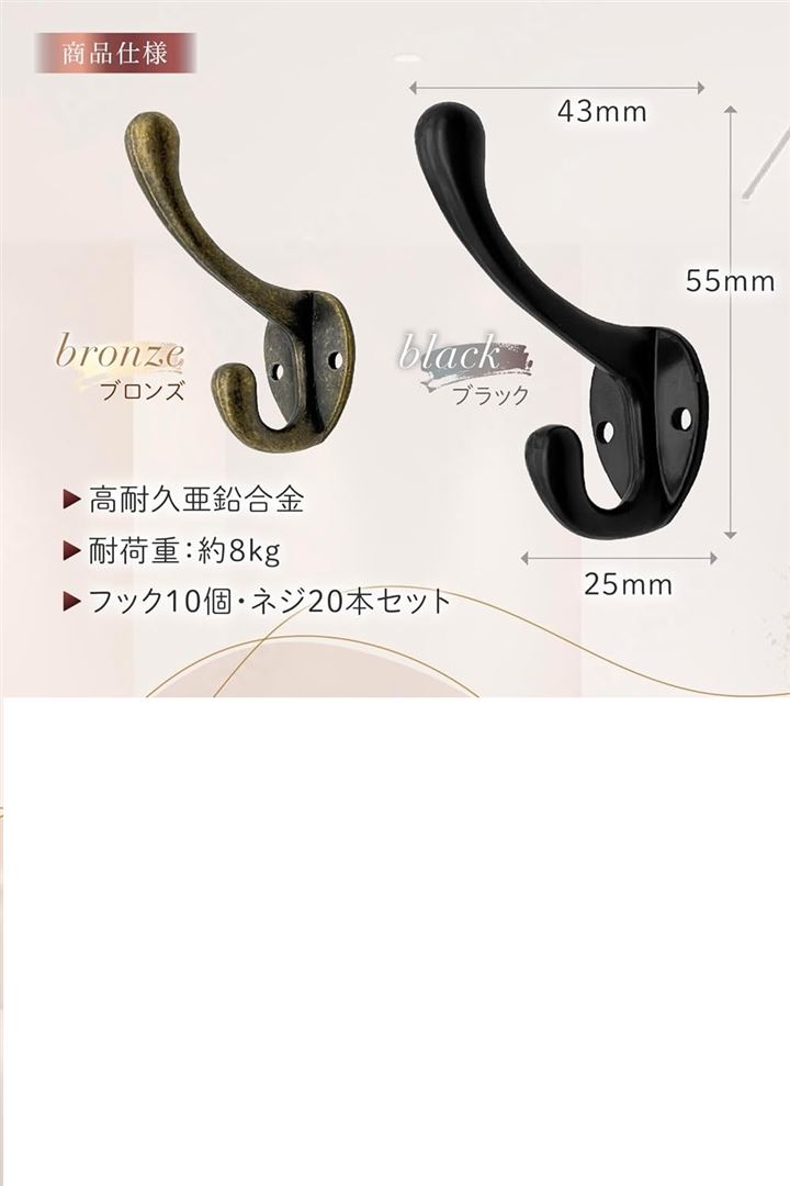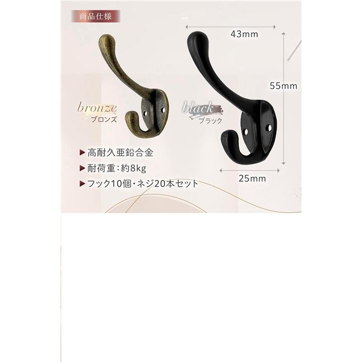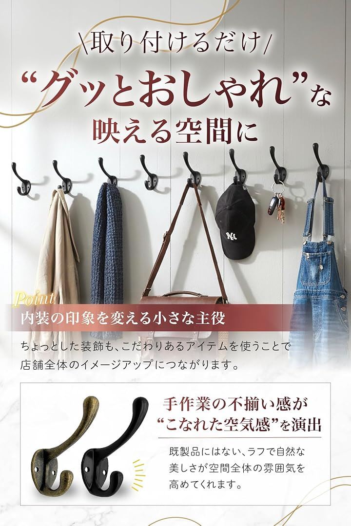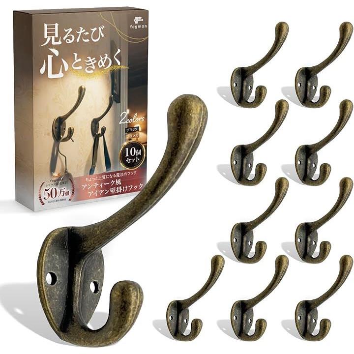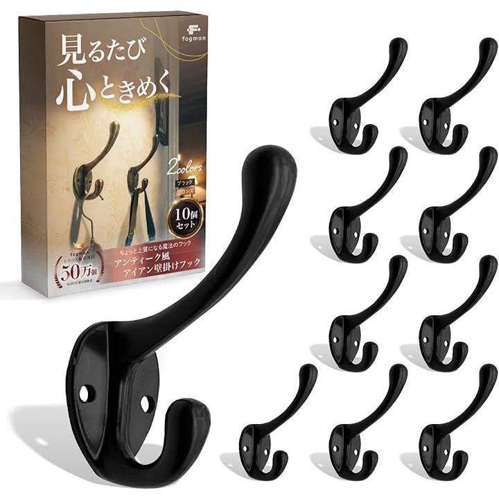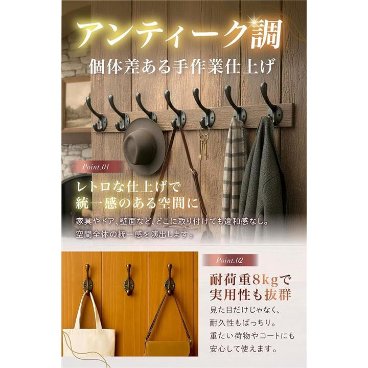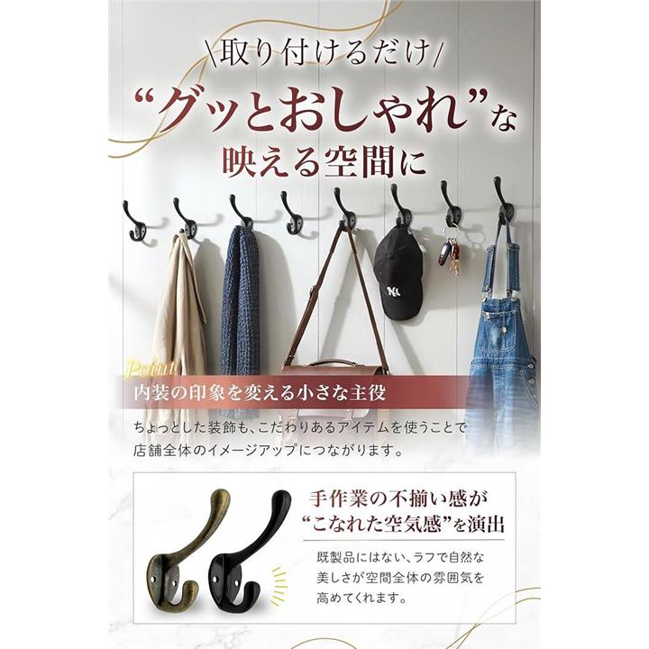 壁掛け フック アンティーク ハンガー 帽子掛け コート ウォール ネジ アイアン 可愛い 10個セット