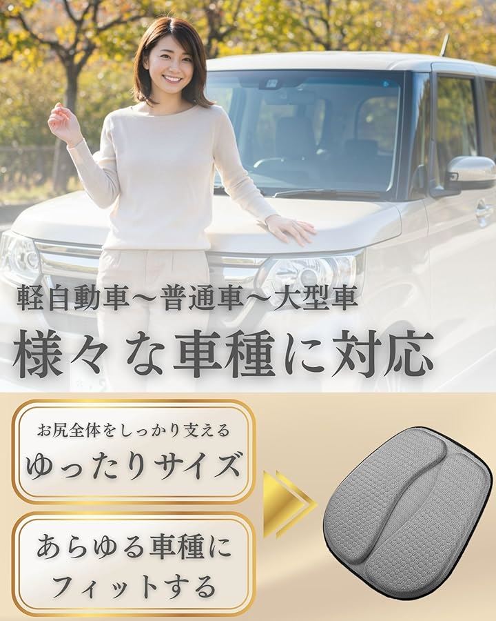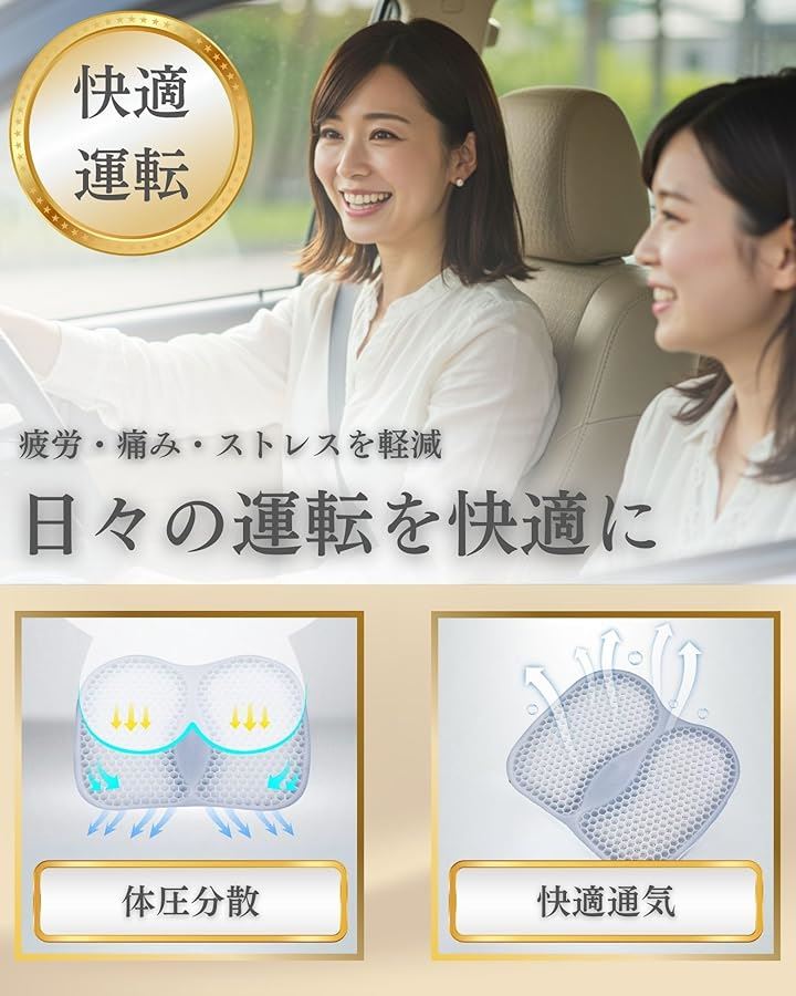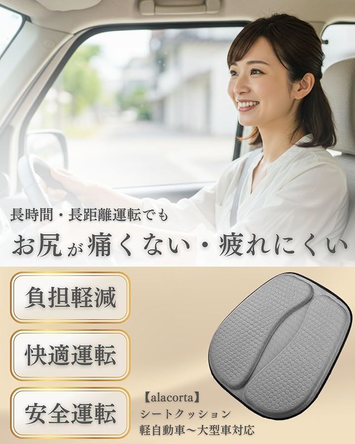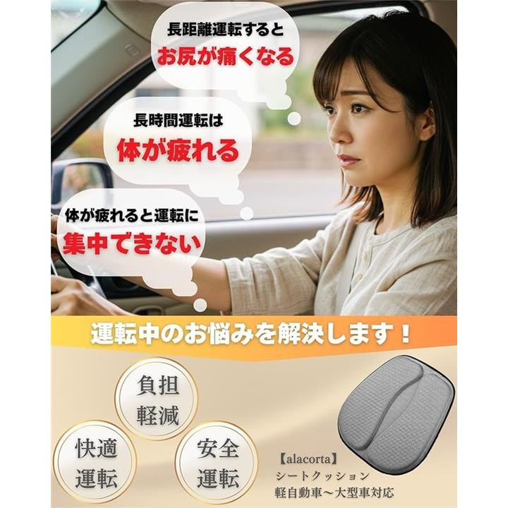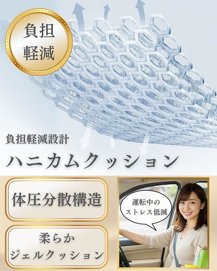 シートクッション ゲルクッション 車 運転用座布団 お尻が痛くならない 疲れにくい 軽自動車 ~ 大型車 まで対応 ハニカム構造 快適グッズ 便利グッズ 運転席 助手席 後部座席 どこでも使える 長距離 長時間 旅行 ALA-010