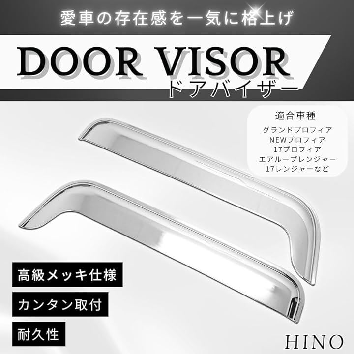 互換品 日野 17プロフィア エアループレンジャー 17レンジャー プロフィア対応 メッキ ドアバイザー 左右セット トラックパーツ 外装 カスタム ドレスアップ