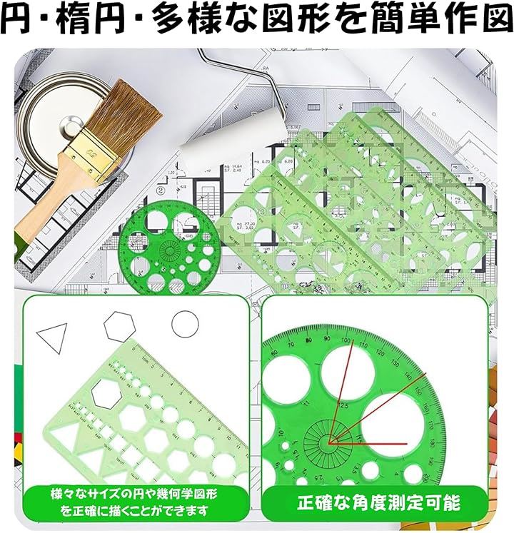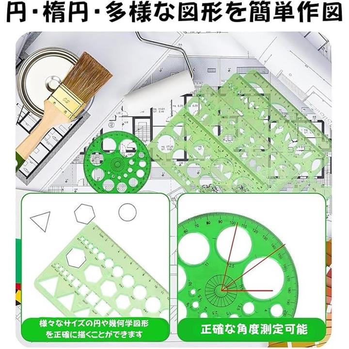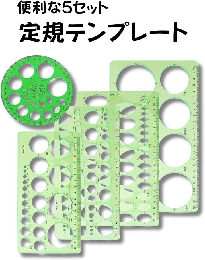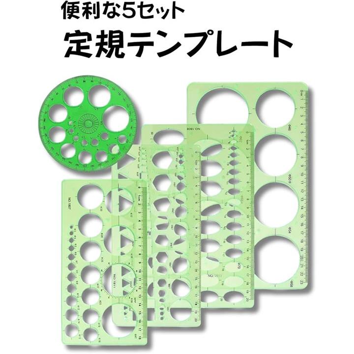 定規 テンプレート 5セット 円定規 図形テンプレート 学生 学習用 建築 デザイン 文具 DIY イラスト 図形描画ツール