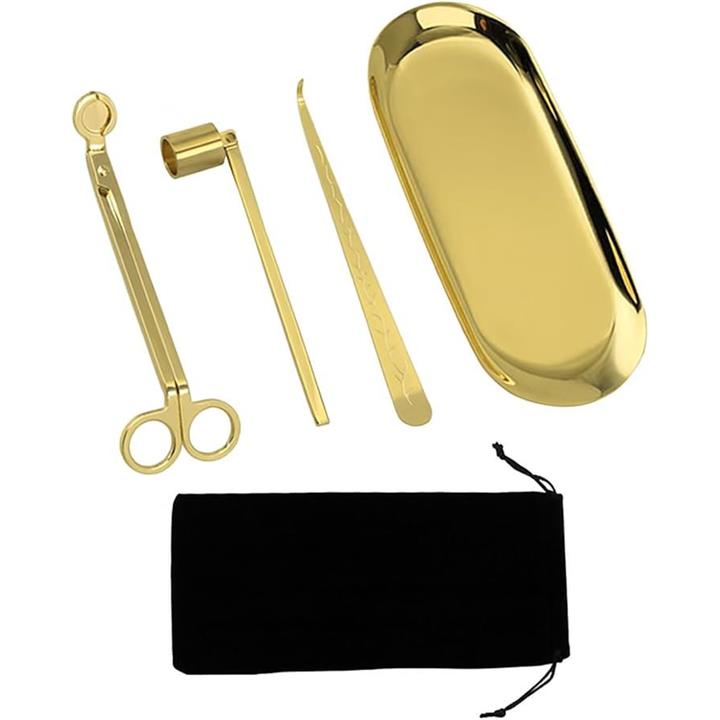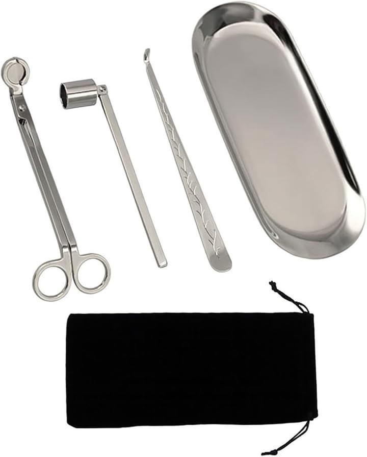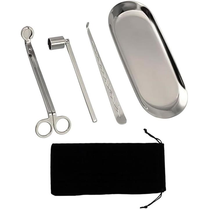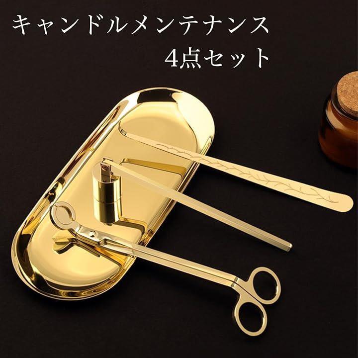 キャンドル メンテナンス 4点セット 収納袋付き キャンドル消し 芯切り はさみ トリマー ろうそく 火消し 消化器 道具 カッター トレイ ツール アロマキャンドル 仏壇