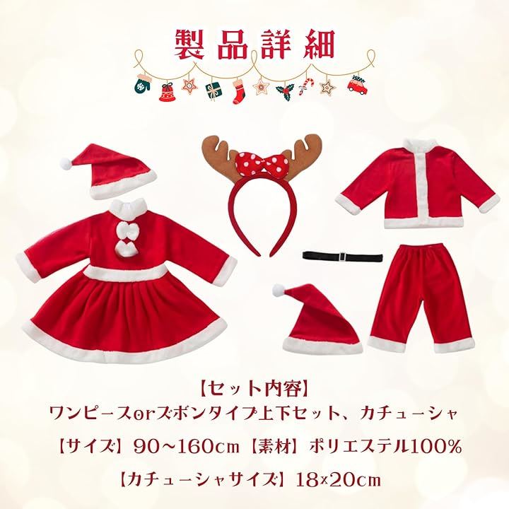 サンタ 衣装 コスチューム キッズ 子供用 トナカイ カチューシャ クリスマス セット