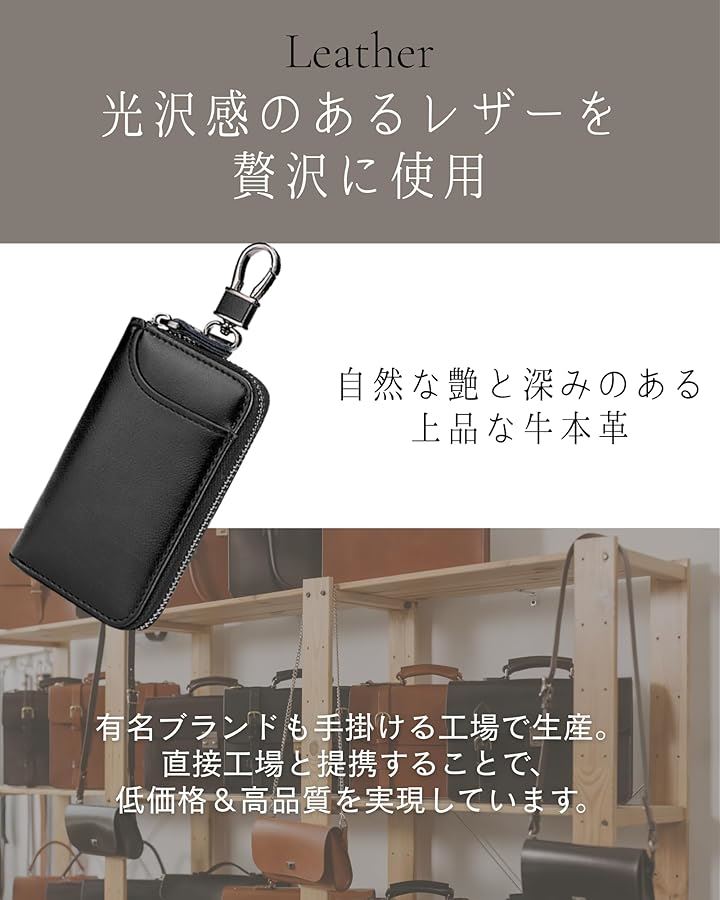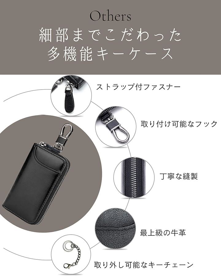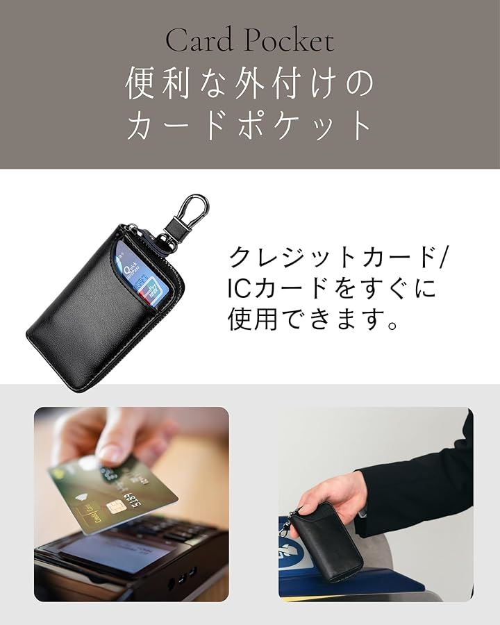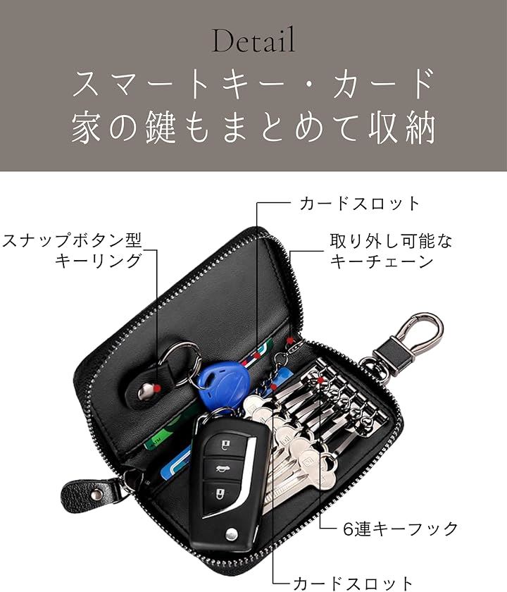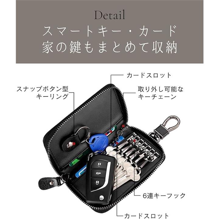 キーケース メンズ 本革 カード入れ付 6連 鍵ケース 車 スマートキー対応 大容量