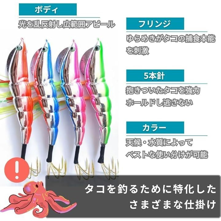タコエギ 3.5号 25g 4色 タコ釣り 仕掛け タコ餌木 5本針