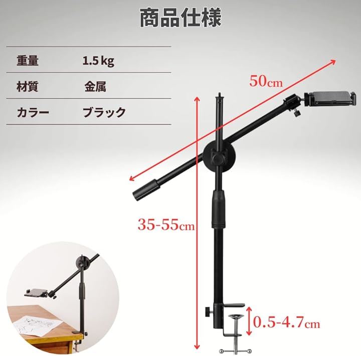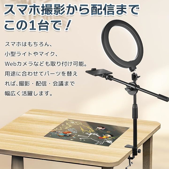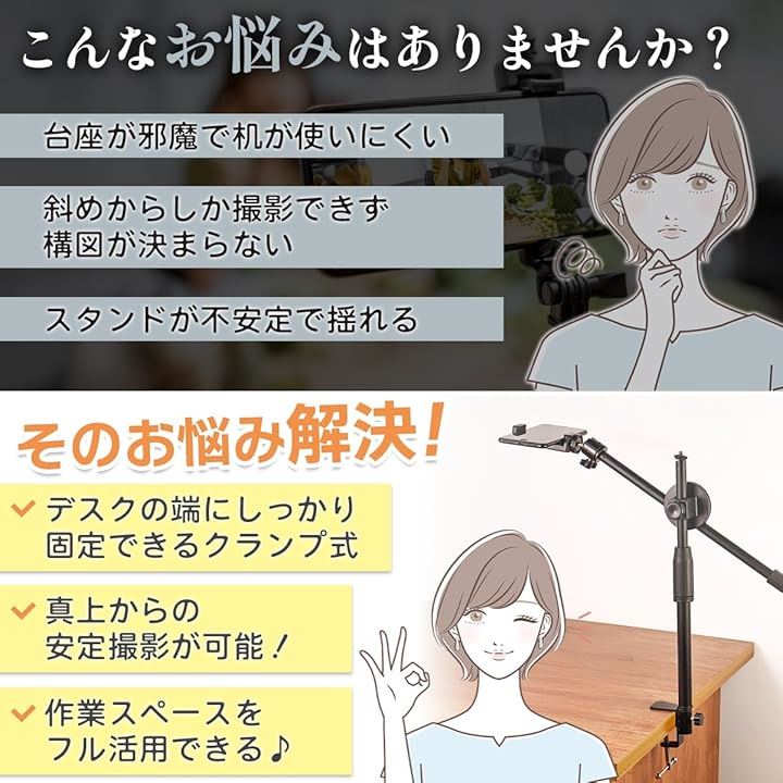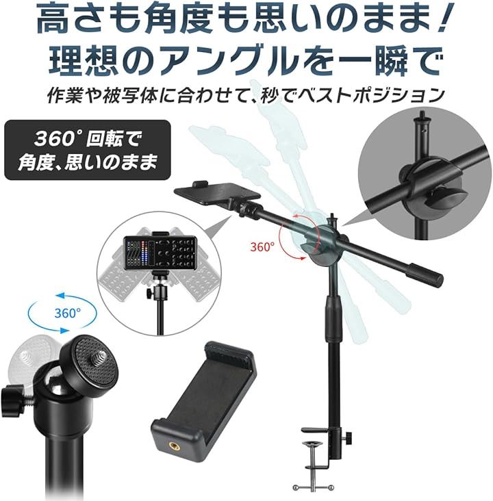 俯瞰撮影 スマホスタンド 真上から撮影 撮影が好きになる 角度自由調整 卓上 アーム 手元撮影 物撮り 高さ調整 web会議