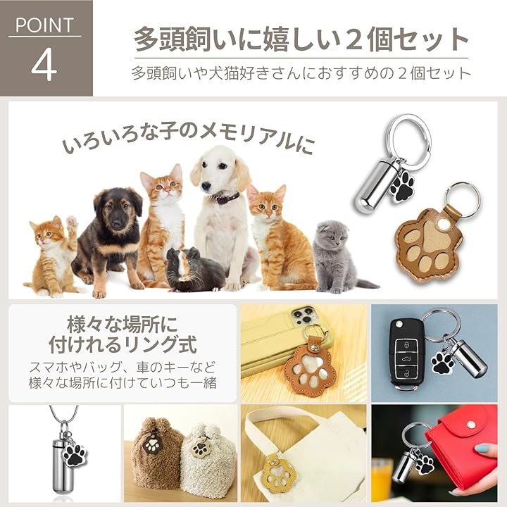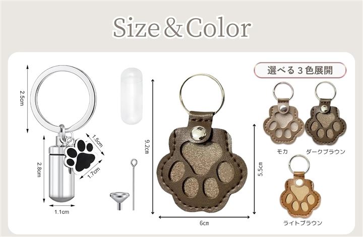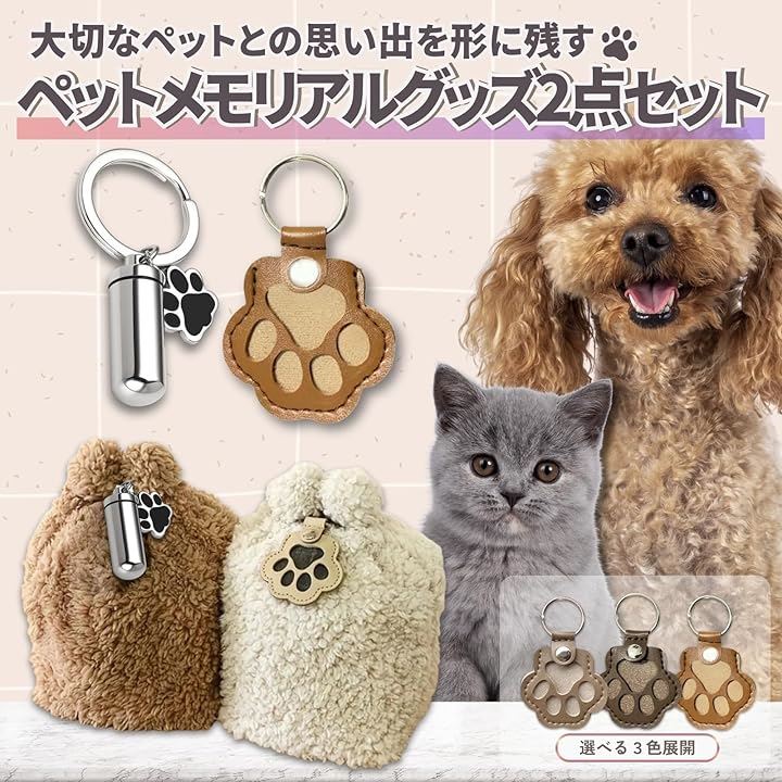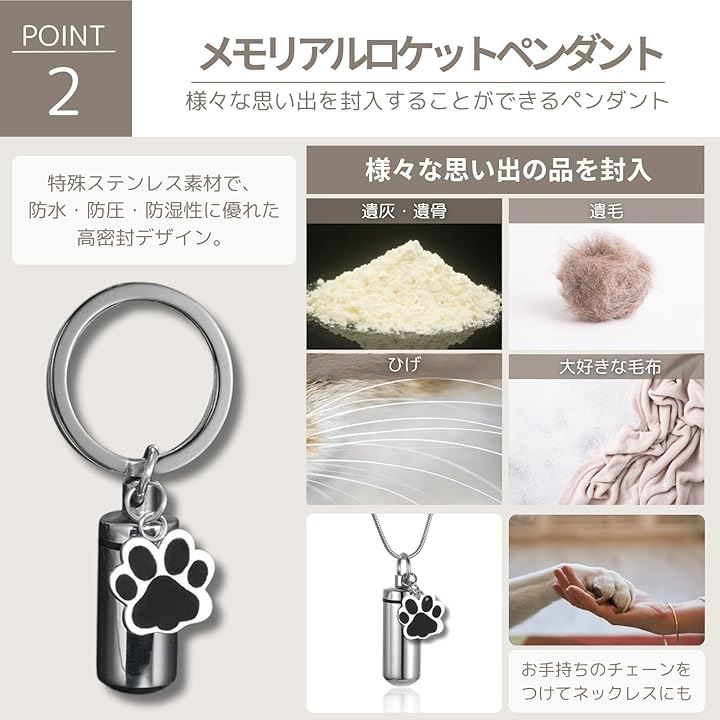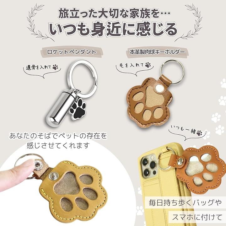 ぬくもりをそばに ペット キーホルダー 遺骨 遺毛 2個セット 犬 猫 ペンダント メモリアルグッズ 持ち歩き 手元供養
