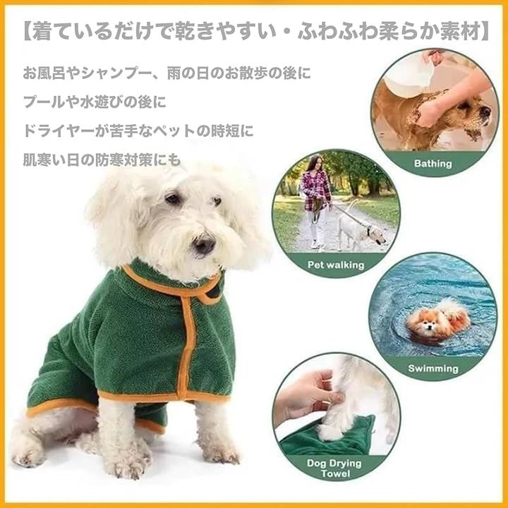 ペット バスローブ タオル 犬 バスタオル かわいい シャンプー 雨の日 お散歩 ドックラン 体拭き