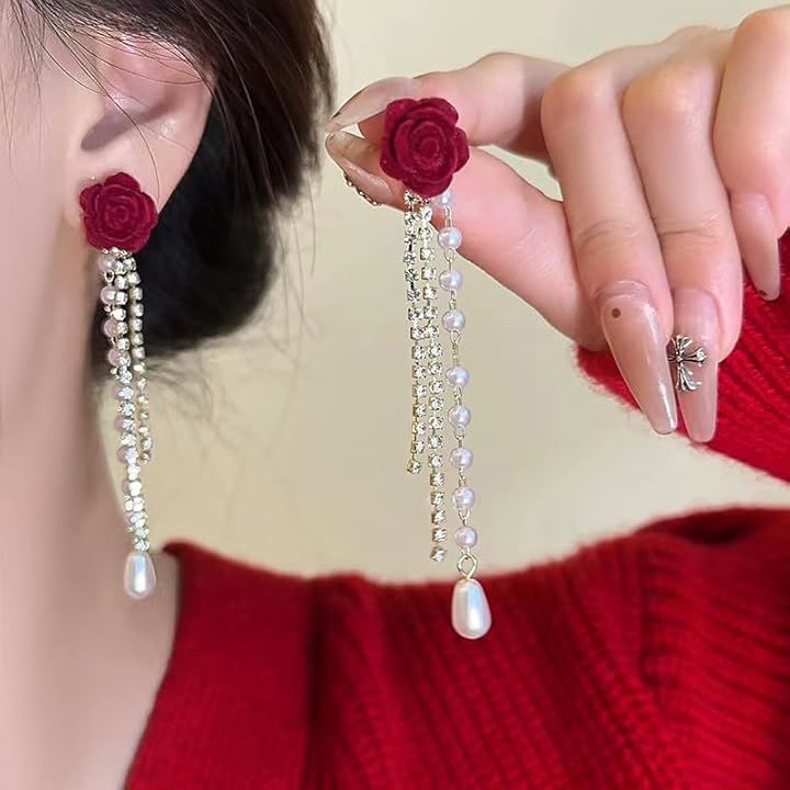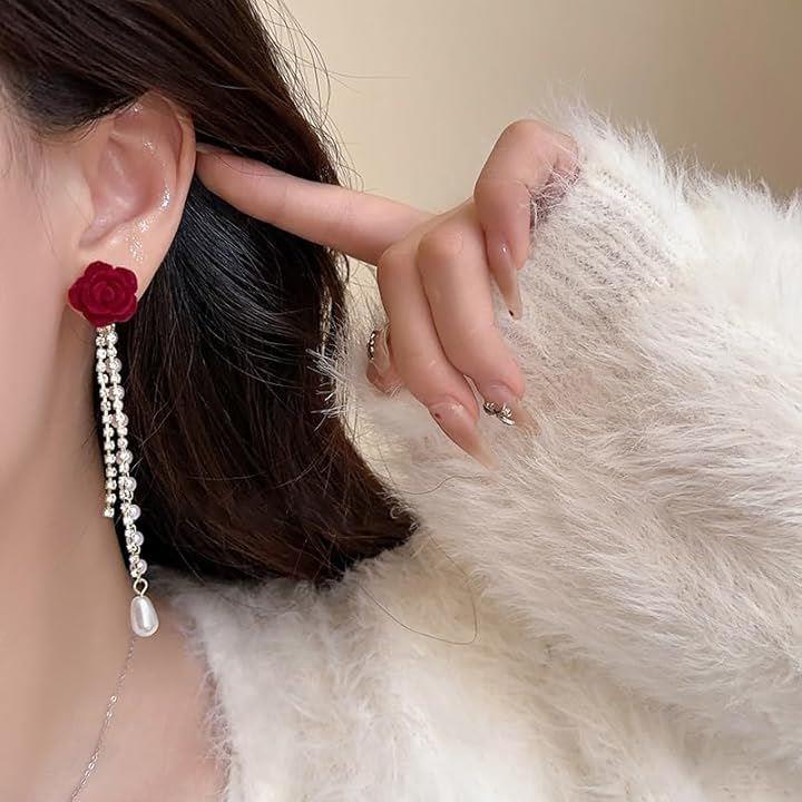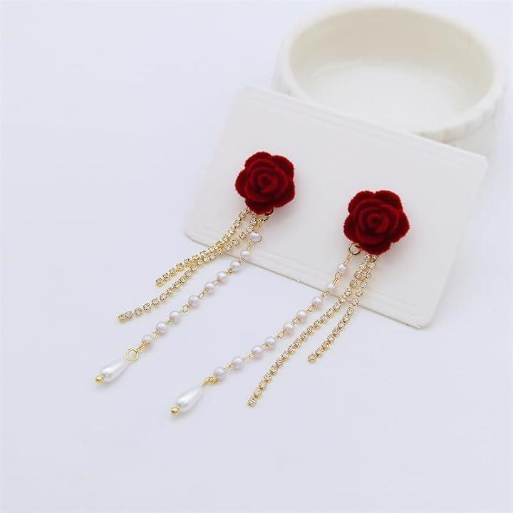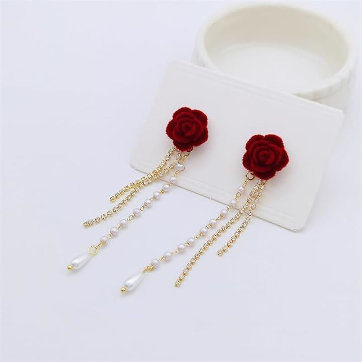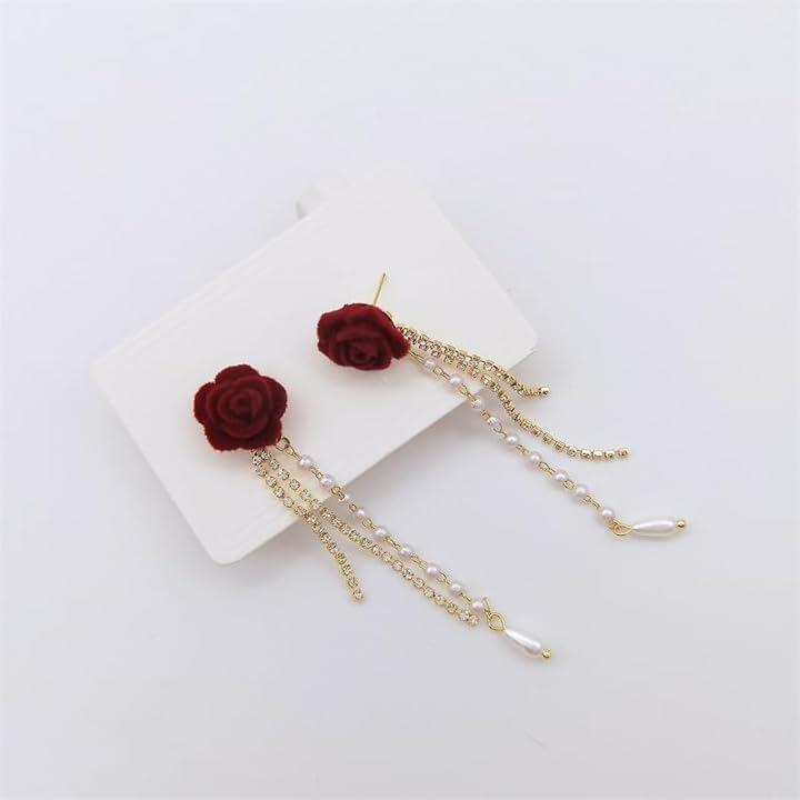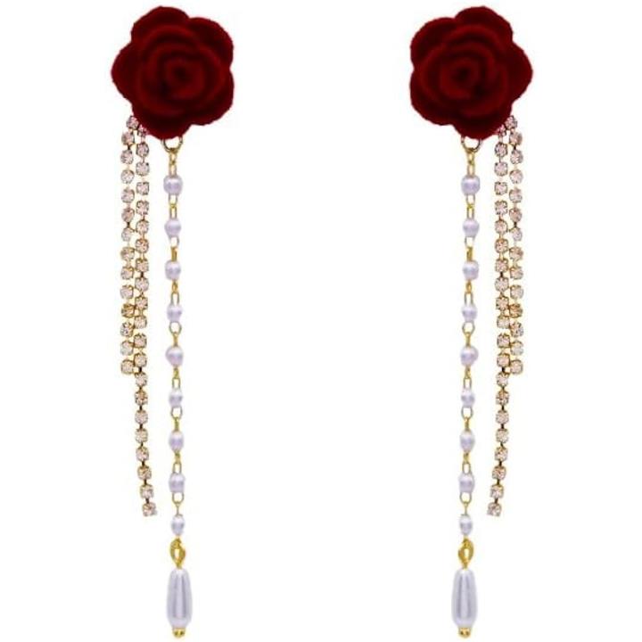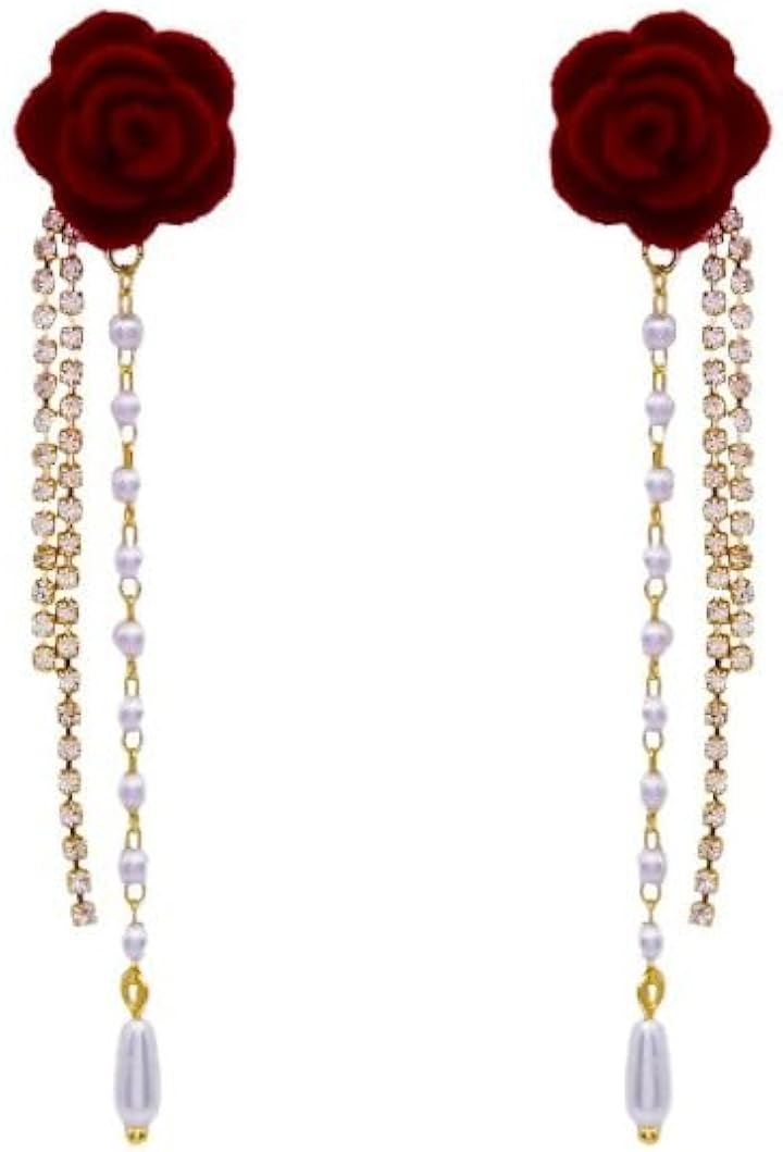 ピアス レディース 薔薇モチーフ 花柄 揺れる パール 垂れ下がり ゴールド 結婚式 アクセサリー 両耳用