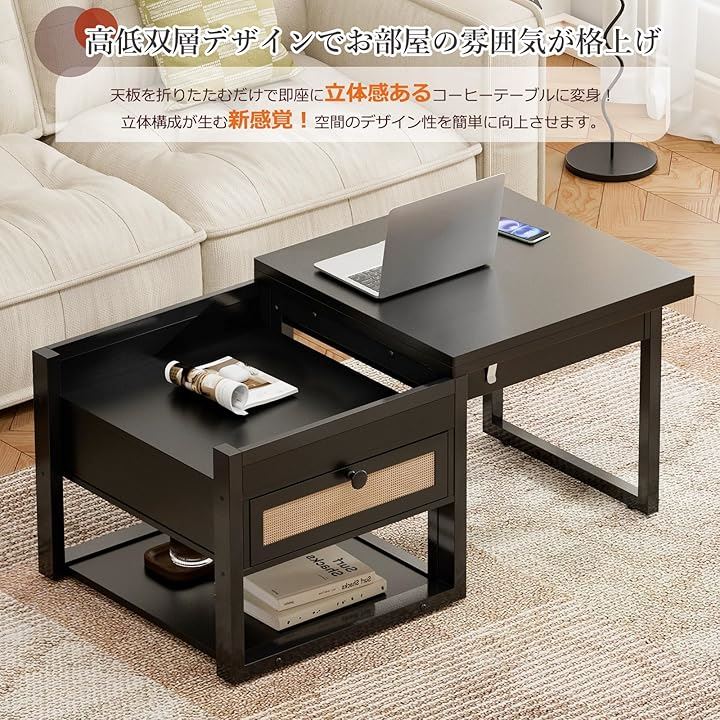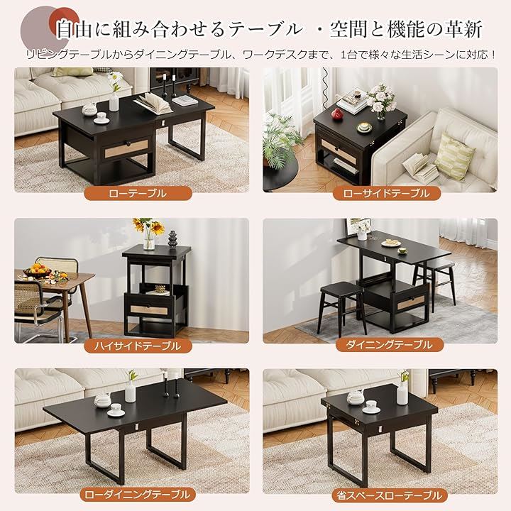 ローテーブル 多機能 コーヒーテーブル 木製 組み合わせ自由 リビングテーブル 高さ調整 ホンムオフィス ダイニングテーブル 折りたたみ リビングルームとオフィス用
