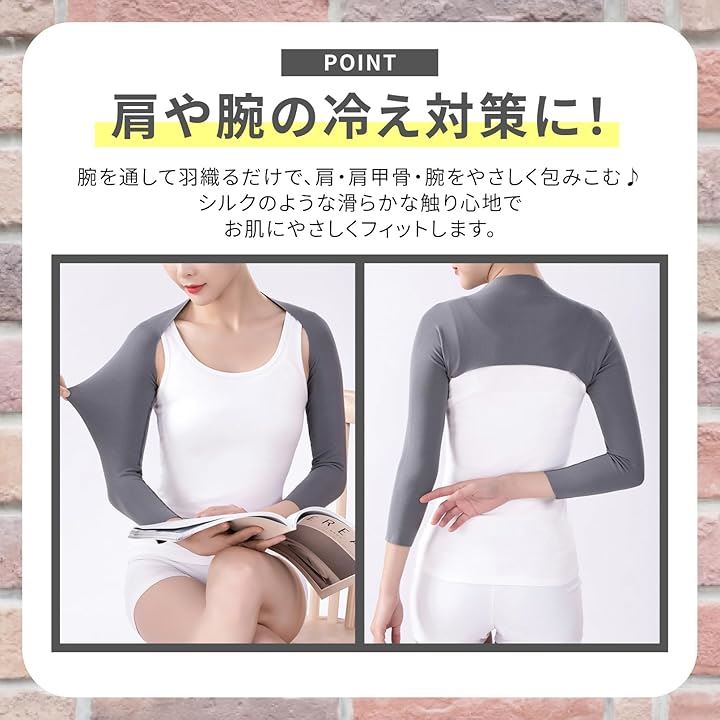 肩 腕 冷え対策 薄手 軽量 両肩用 保温 長袖 サポーター