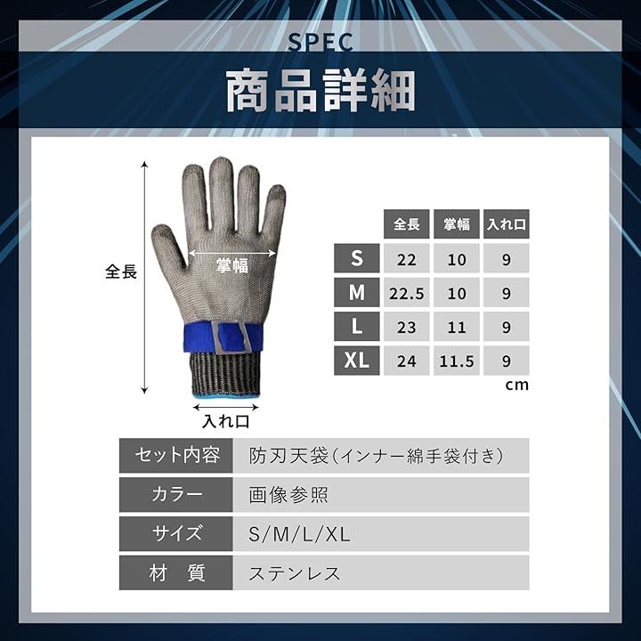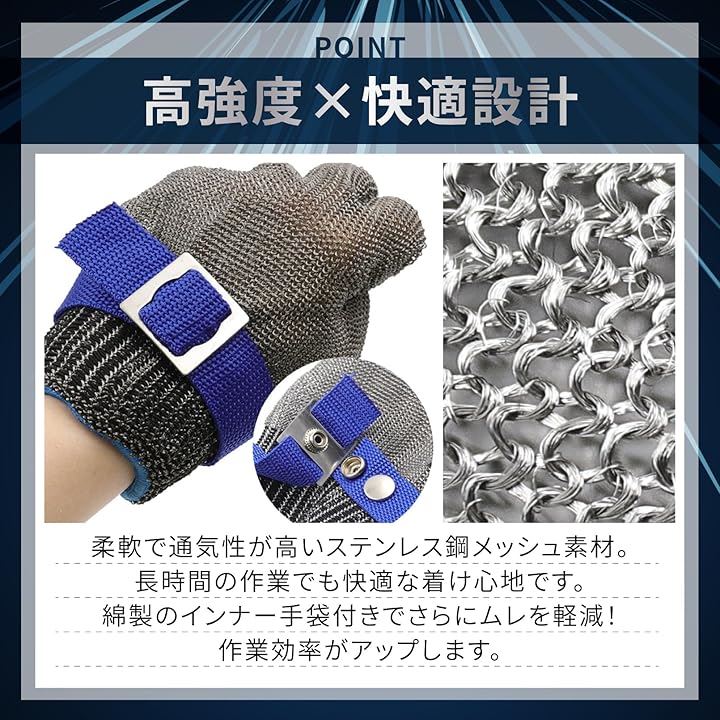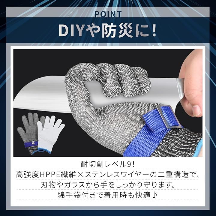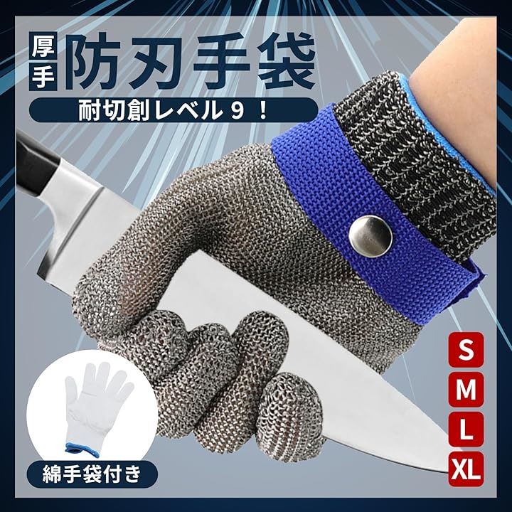 防刃手袋 耐切創レベル9 綿手袋付き 作業 料理 防災に最適 左右兼用 厚手 メッシュ