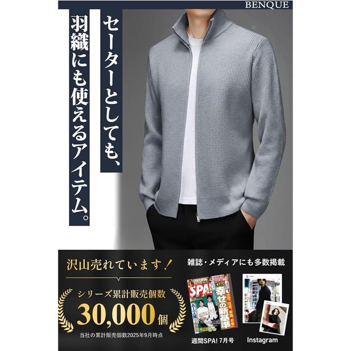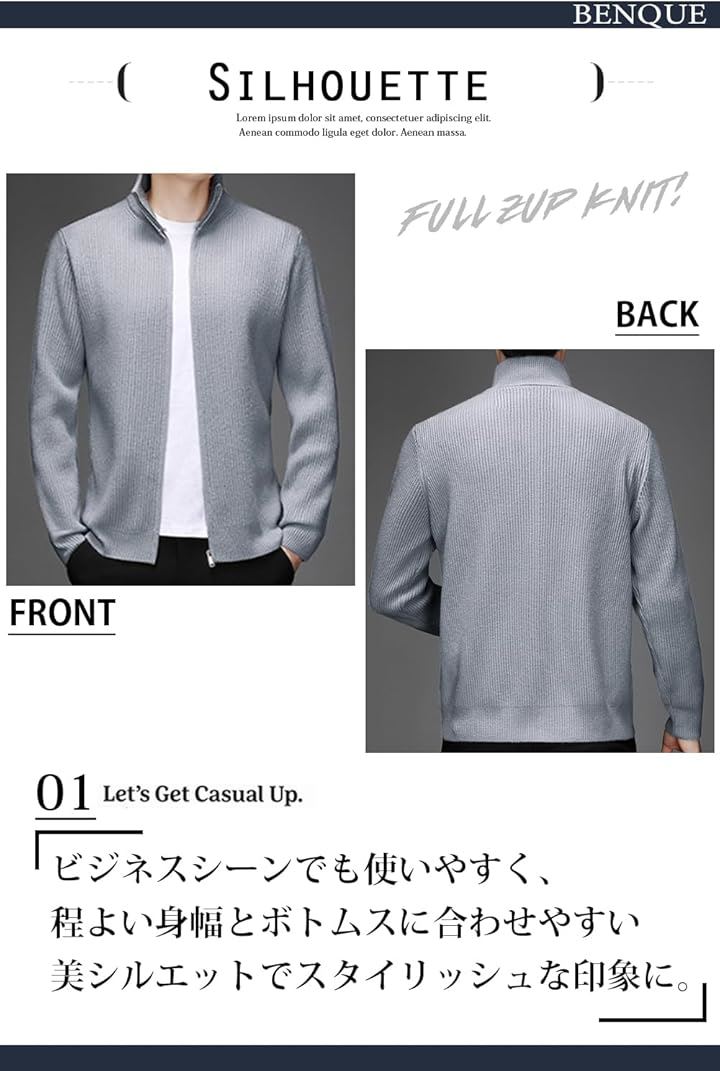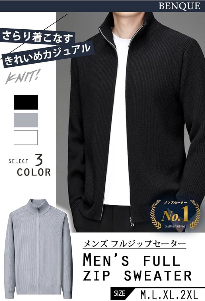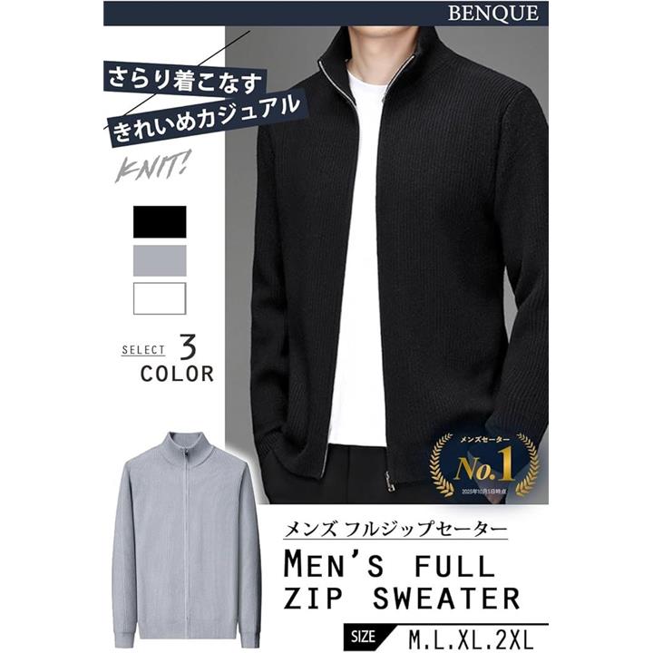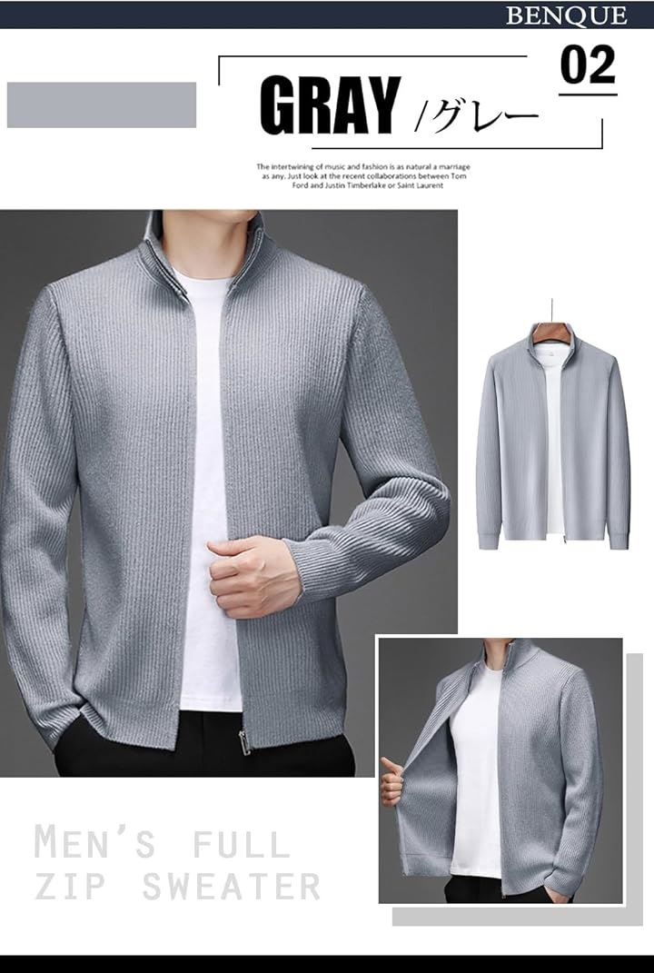 [ベンケ] 「肌触り良く、暖かい」 セーター メンズ フルジップ ハイネック 長袖 カーディガン オフィス 秋冬 暖かい 冬物 メンズセーター |