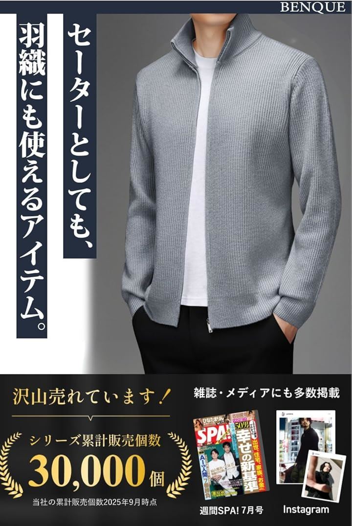 冷え込む季節にもぴったりで、防寒性と見た目のスマートさを両立したデザインで、寒がりな方にもおすすめの機能性。
