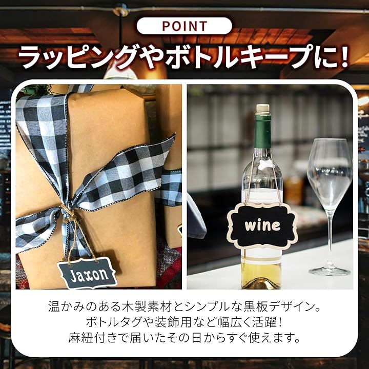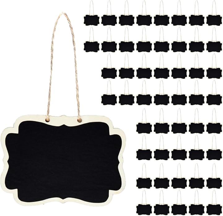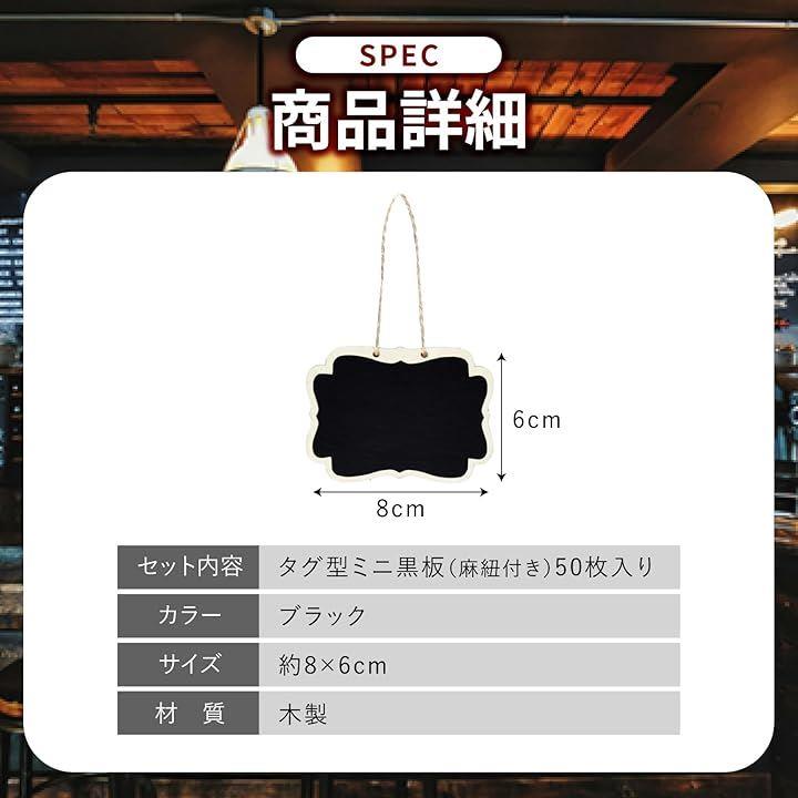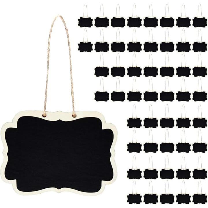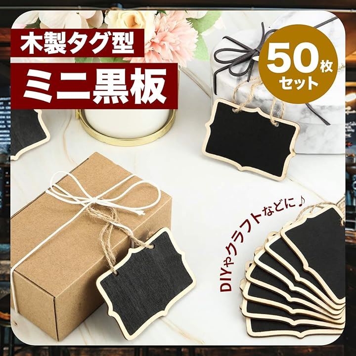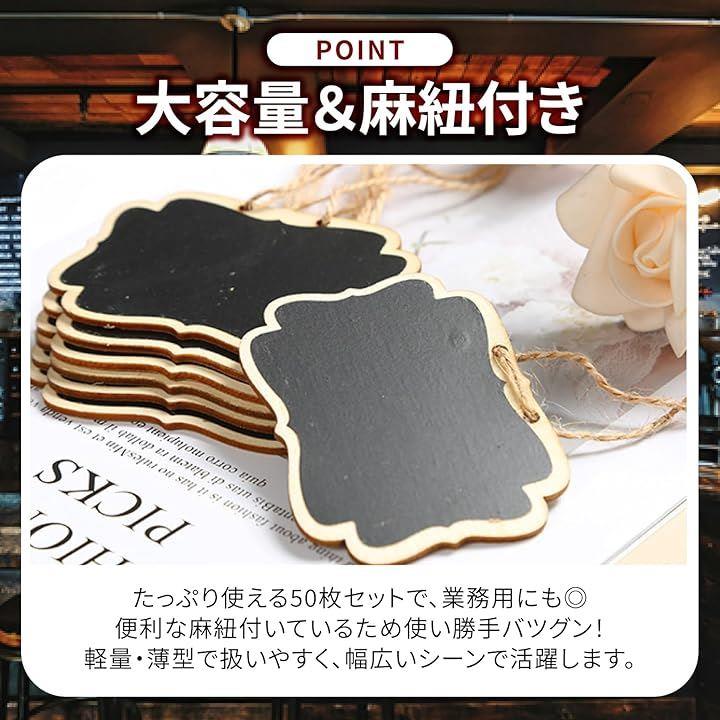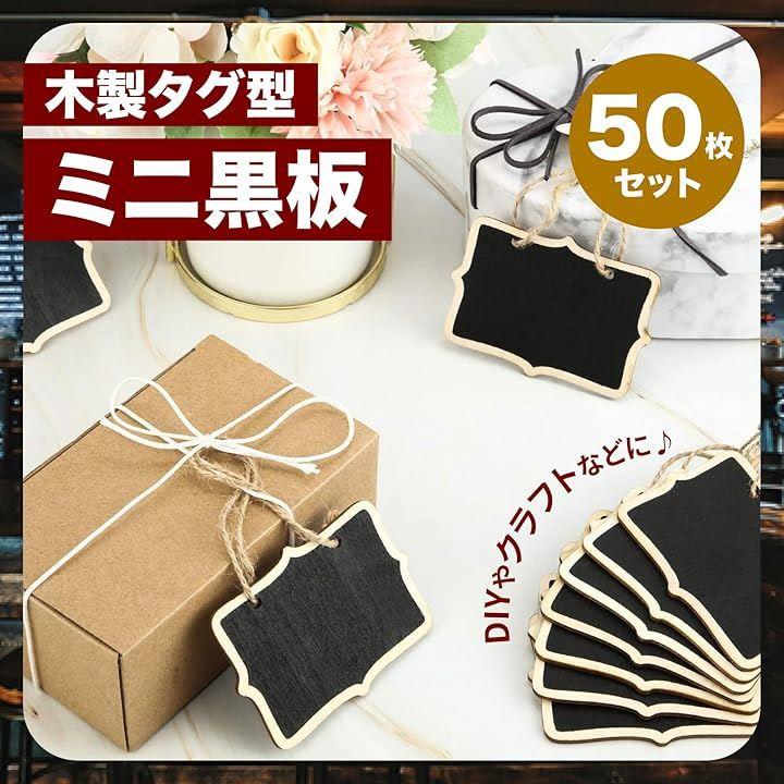木製 ミニ黒板 タグ 約8.5x6cm 50枚セット 麻紐付き 装飾 ボトルキープ カフェ 結婚式