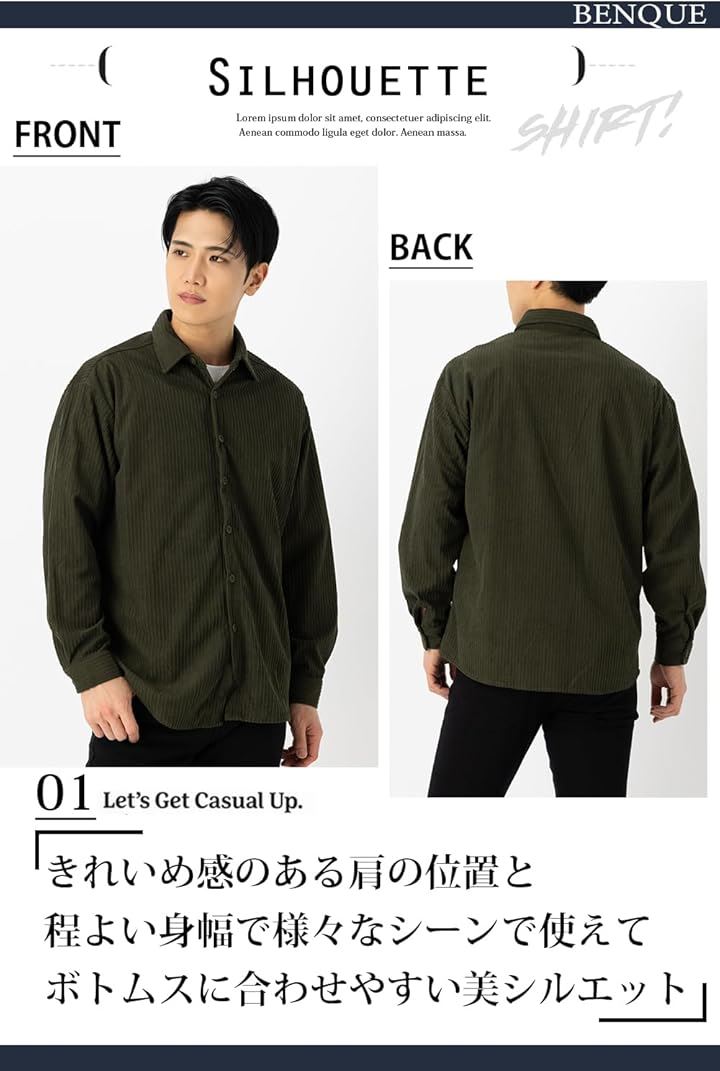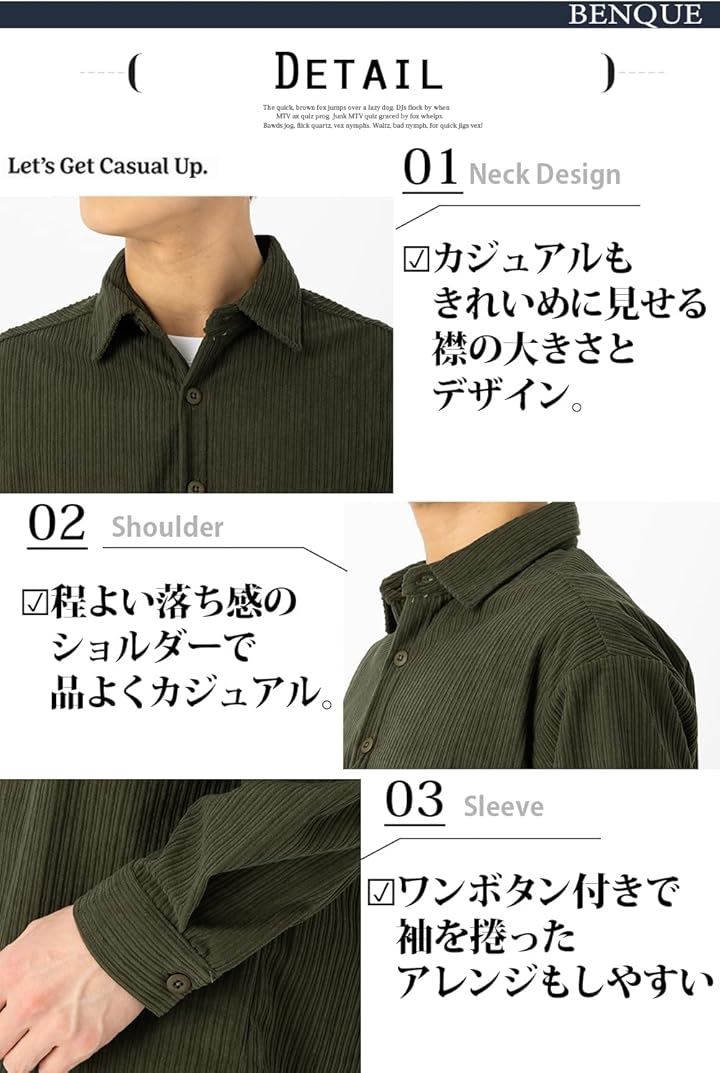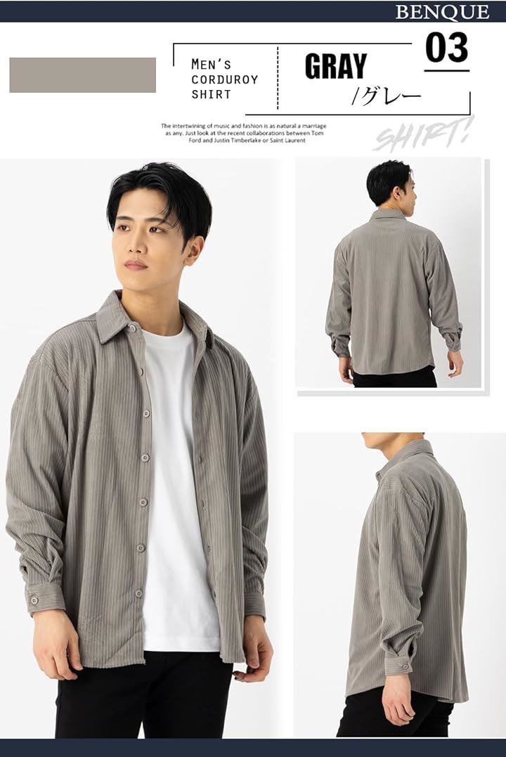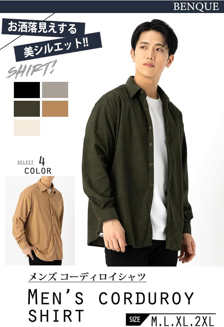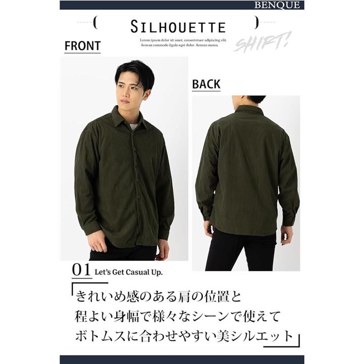 [ベンケ] 「ずっと着ていられる着心地の良さ」 コーデュロイシャツ 無地 長袖 カジュアル ロング コーディロイ おしゃれ きれいめ 羽織り トップス 襟付き メンズ秋服 |