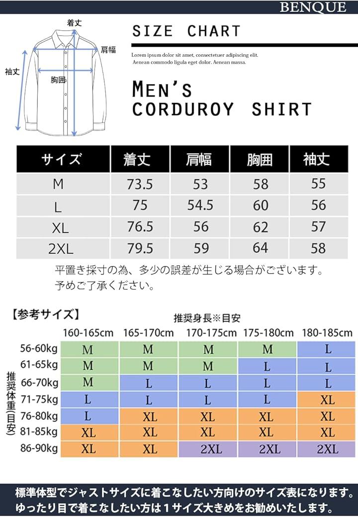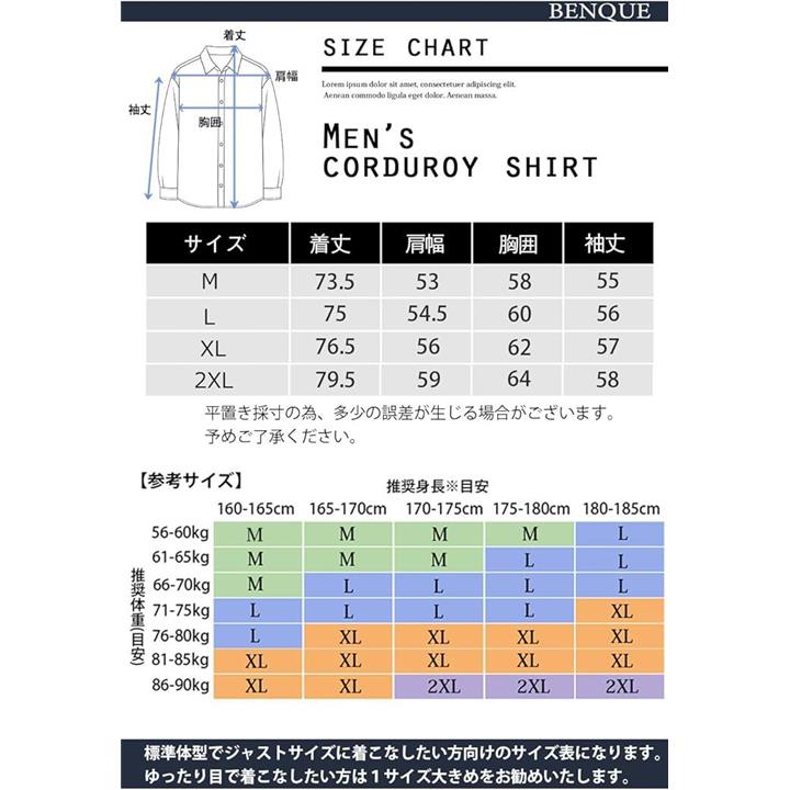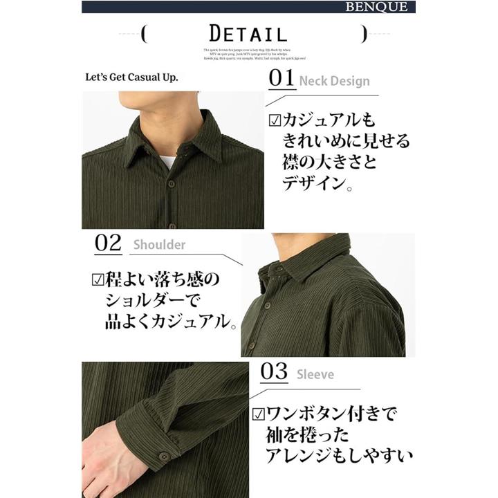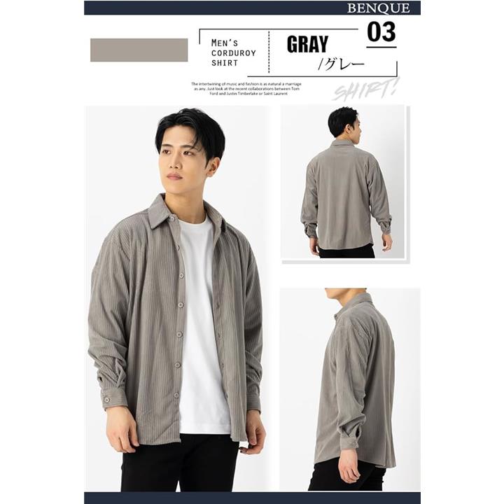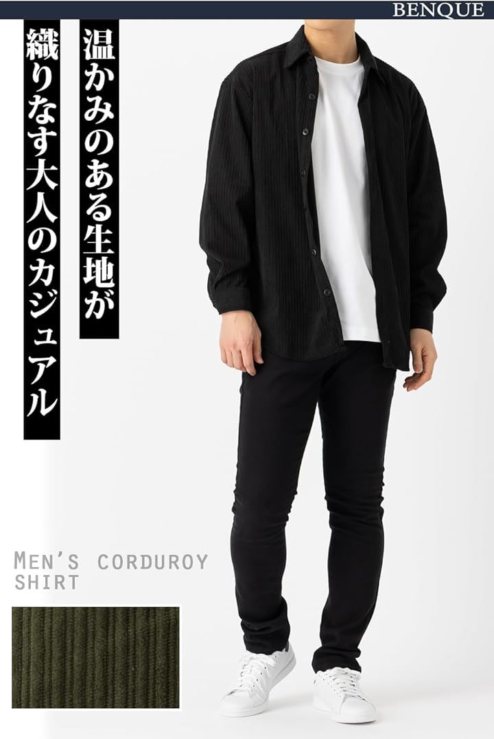 [ベンケ] 「ずっと着ていられる着心地の良さ」 コーデュロイシャツ 無地 長袖 カジュアル ロング コーディロイ おしゃれ きれいめ 羽織り トップス 襟付き メンズ秋服 |