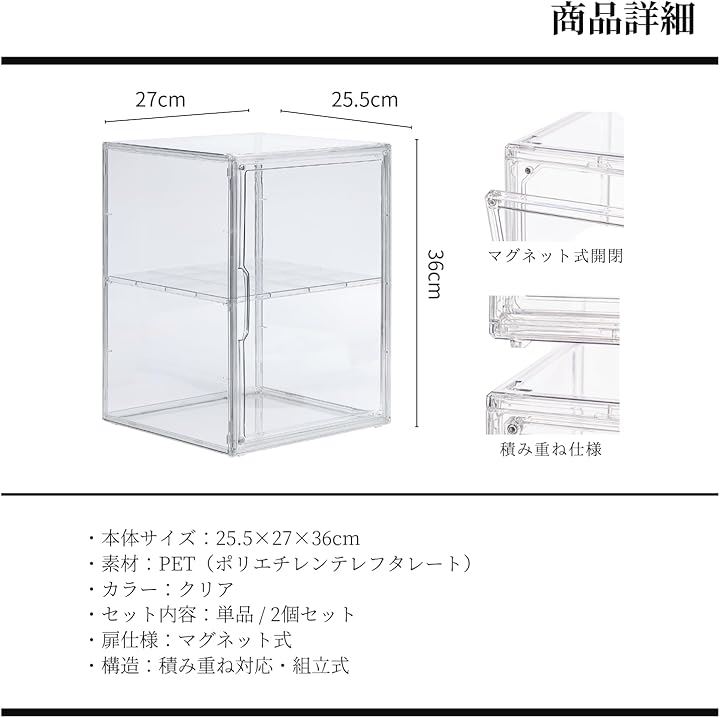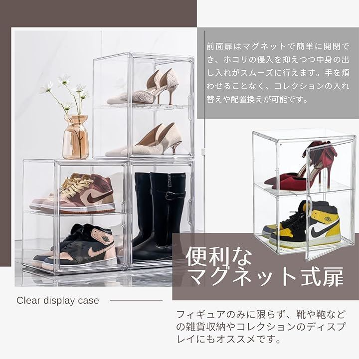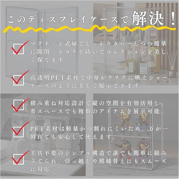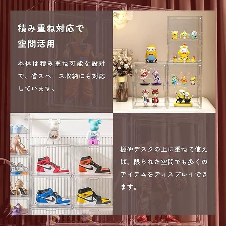 フィギュアケース コレクションケース マグネット開閉式 棚 透明 ショーケース ディスプレイ 展示 積み重ね可能