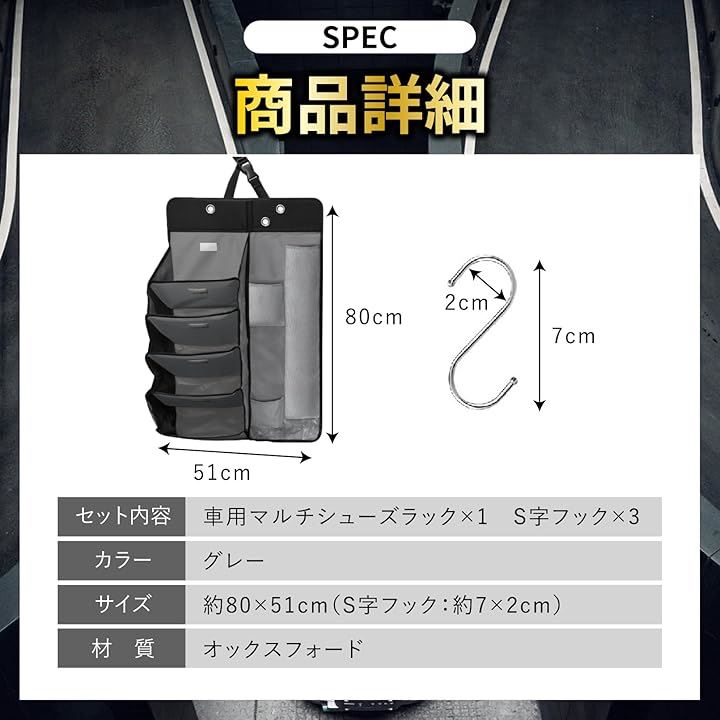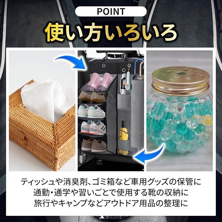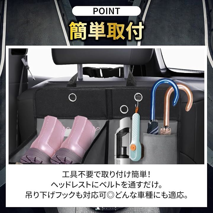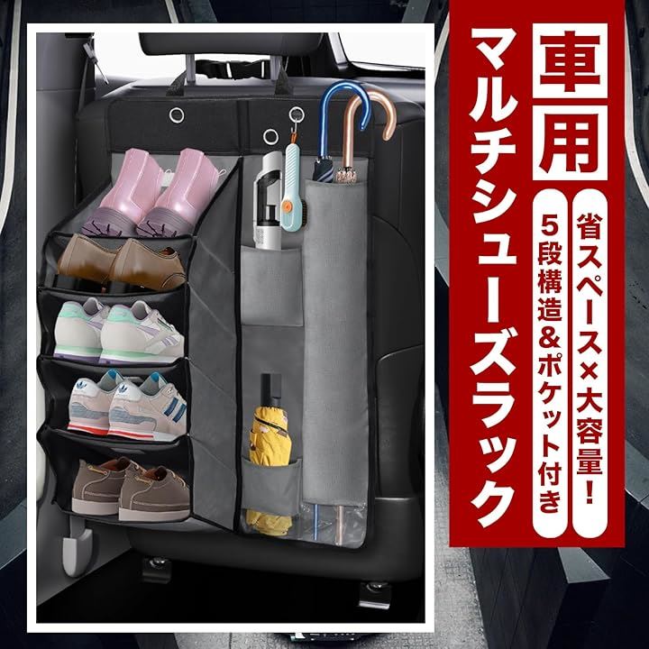 車用シューズラック 傘ホルダー付き 省スペース収納 靴置き 車内収納 フック付き