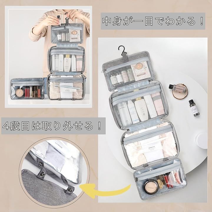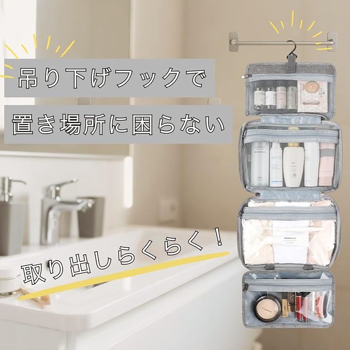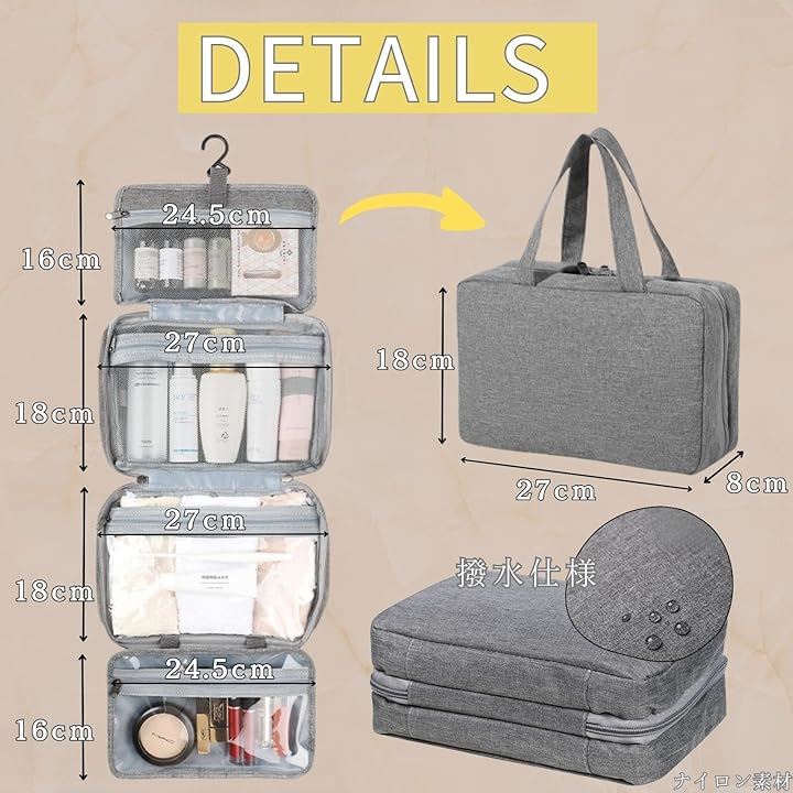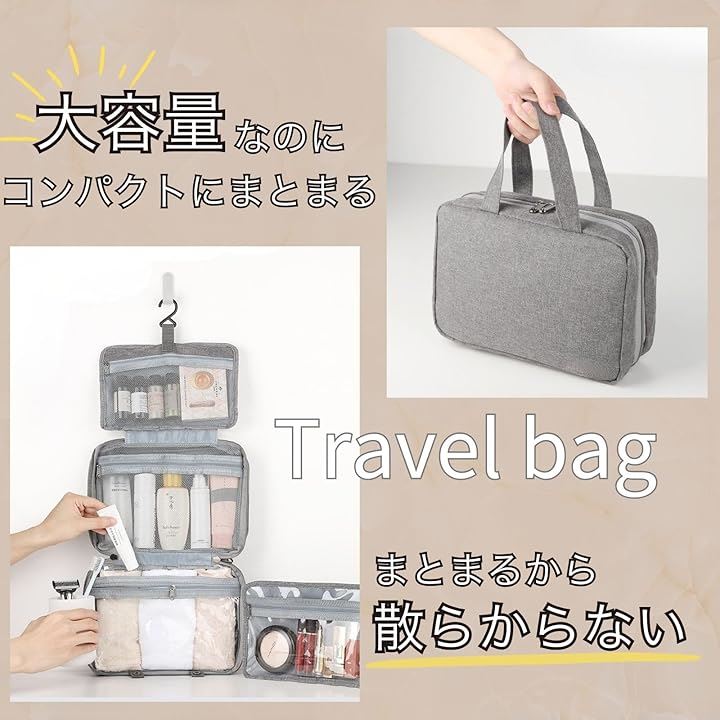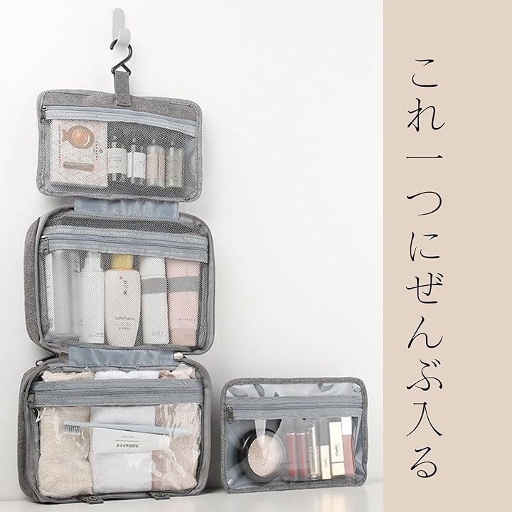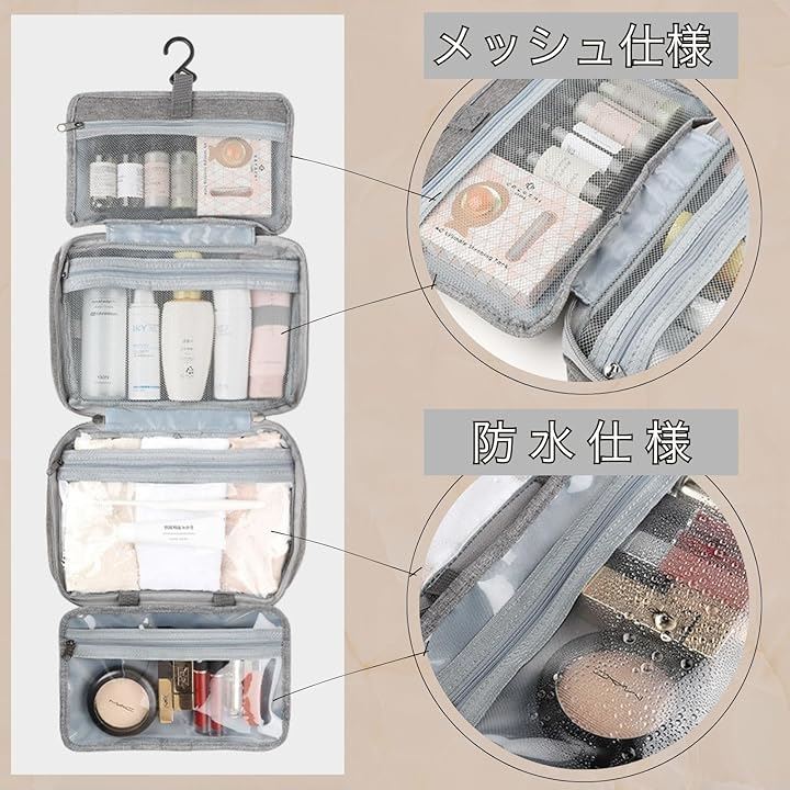 大容量 トラベルポーチ 海外旅行 小物 化粧品 大きめ 防水 吊るせるポーチ