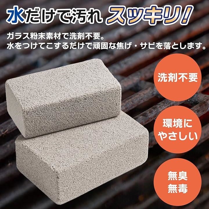 バーベキューや日常のお掃除に大活躍する「クリーニングレンガ 2個セット」です。
