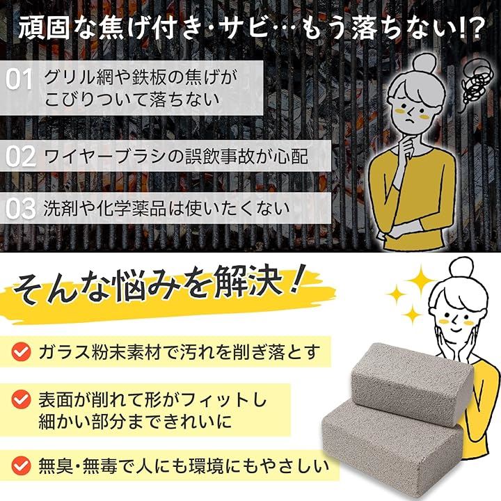 クリーニングレンガ 2個セット 軽石 10cmx7cmx4cm 70g 焦げ落とし バーベキュー 鉄板掃除用 |