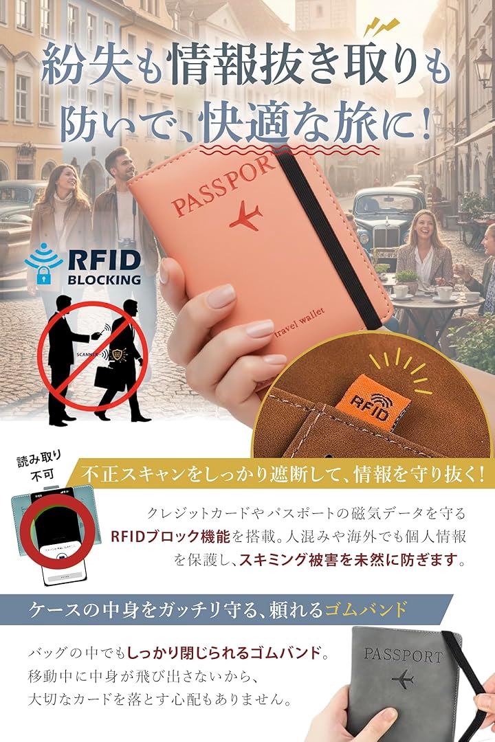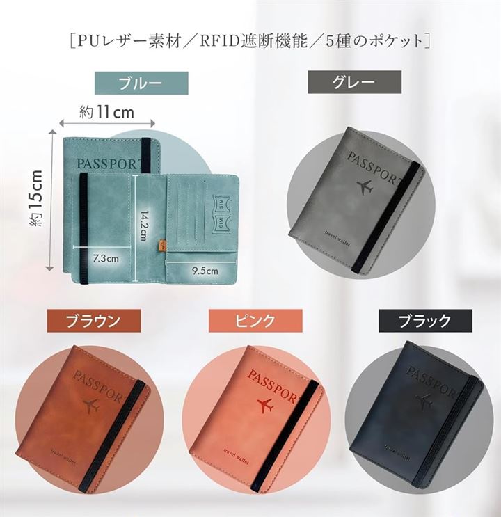 パスポートケース スキミング防止 カバー RFID対応 可愛い 首下げ 薄型 防水 コンパクト