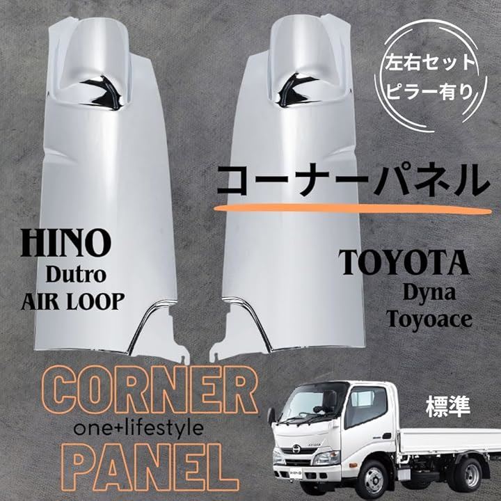 互換品 日野 エアループ デュトロ 標準キャブ ピラー有り車用 メッキ コーナーパネル 左右セット トヨタ ダイナ トヨエース対応 フロントサイド クローム