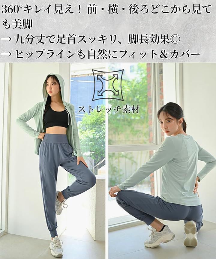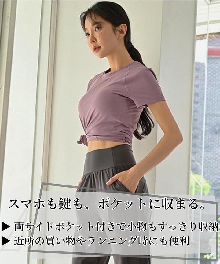レギンス感覚で動きやすく、ヨガ ウェアとしても、カジュアルな外出やルームウェアとしてもコーデ自在です。