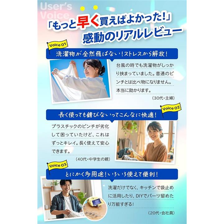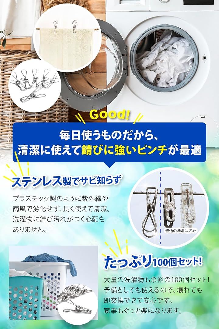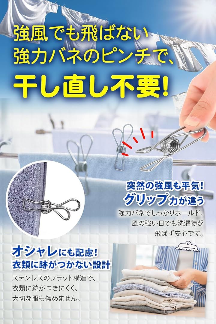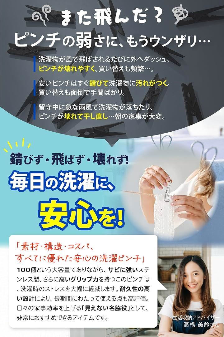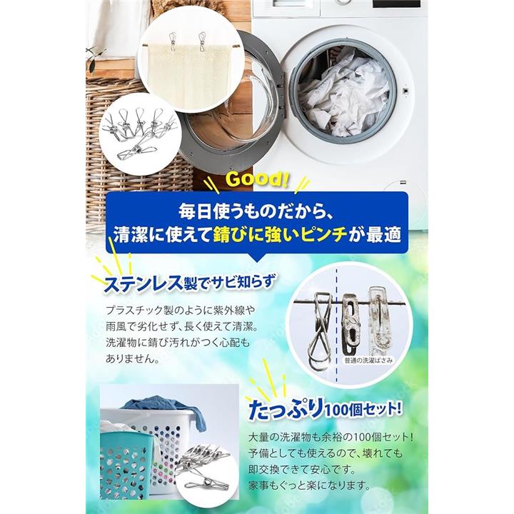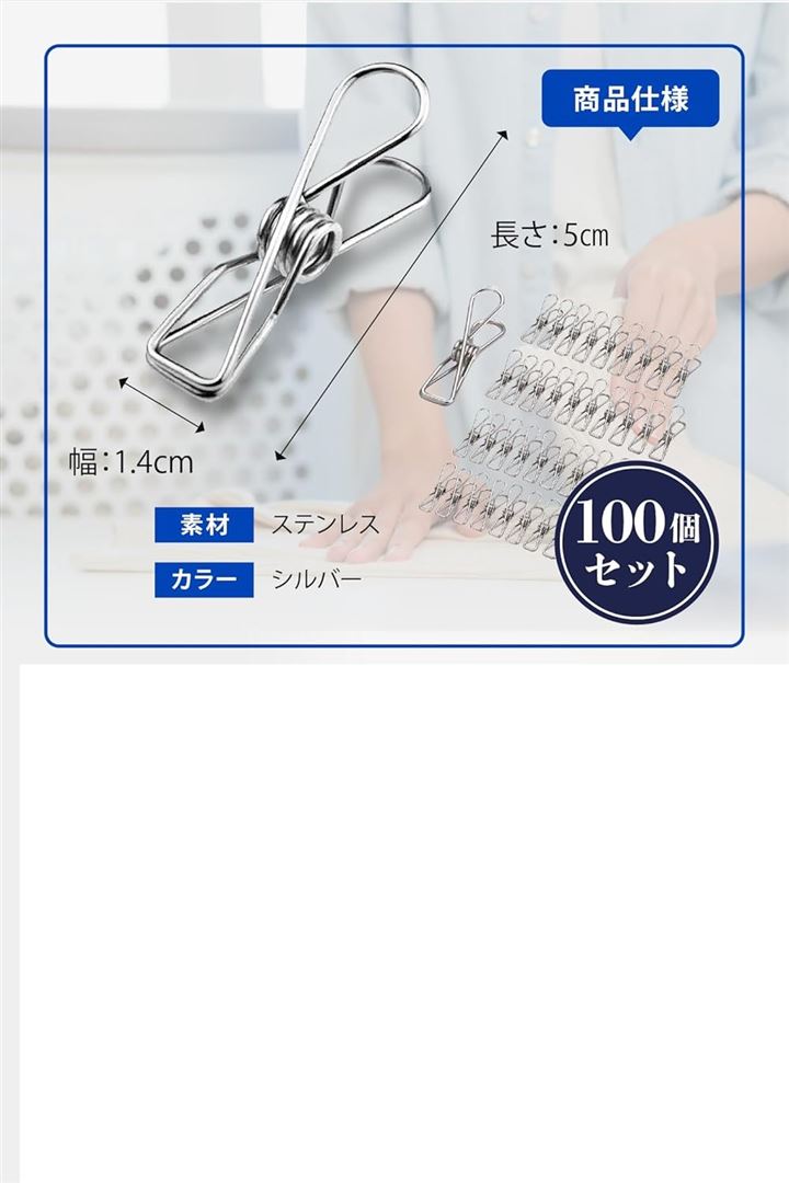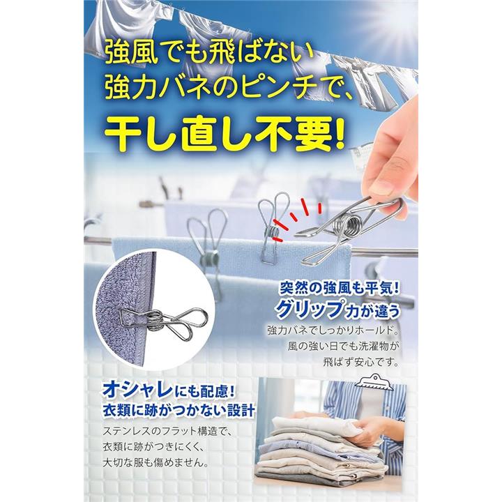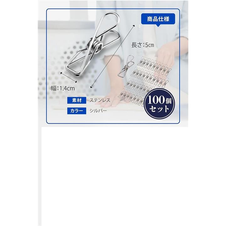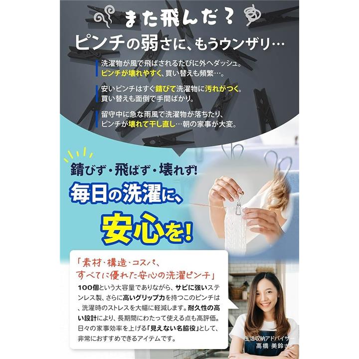 生活収納アドバイザー監修 洗濯バサミ ステンレス ピンチ クリップ フック 強力 アルミ 小 大 交換用 100個セット