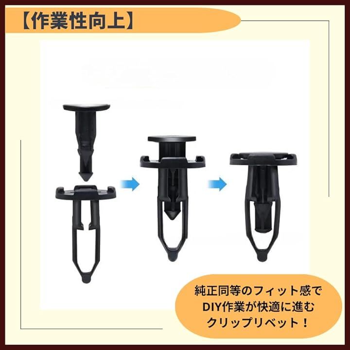 プッシュリベット バンパークリップ 車 固定 9mm ブラック 100個セット