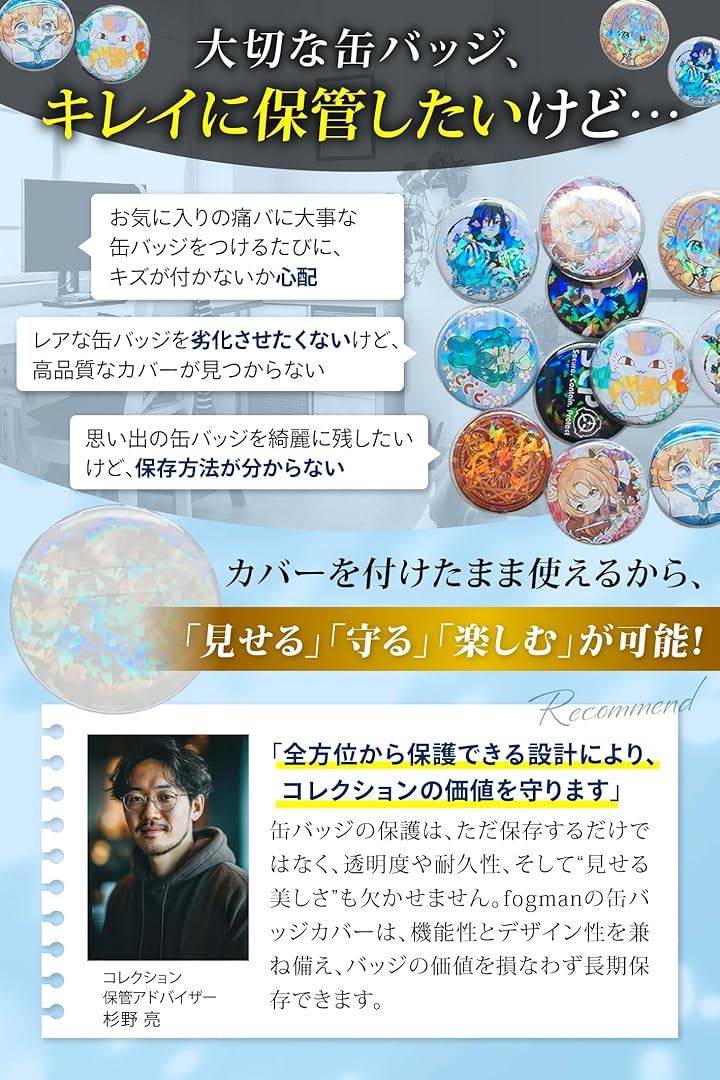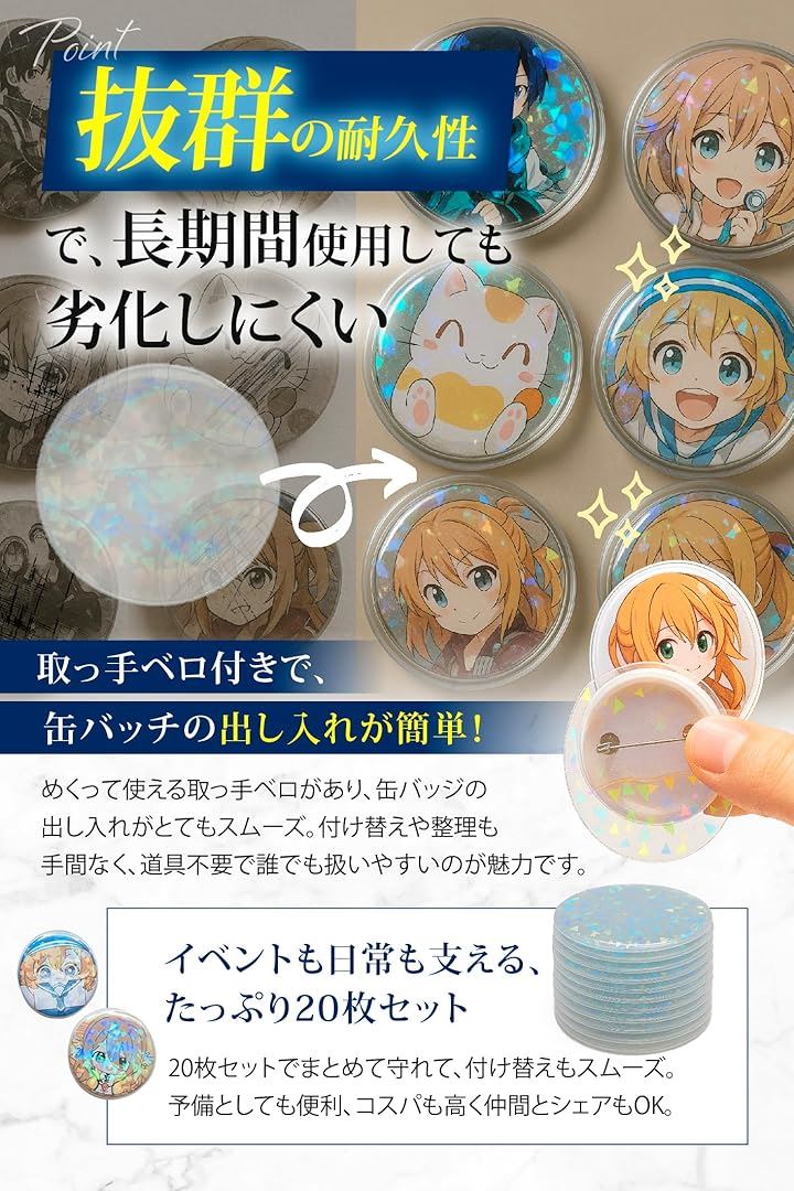 コレクション保管アドバイザー監修 缶バッジカバー 痛バ ケース 収納 キット ディスプレイ フィルム 保護 シート 20枚セット