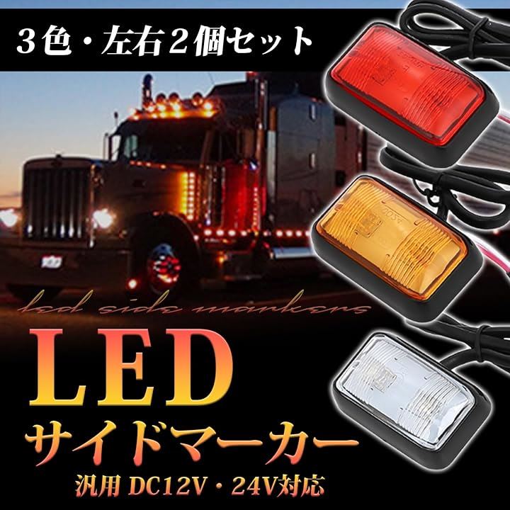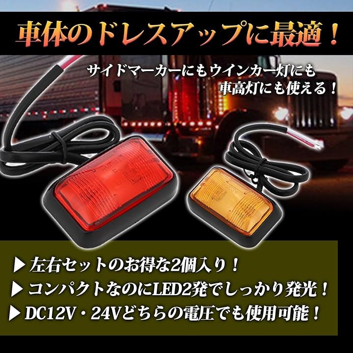 サイド マーカー LED 12v 24v 汎用 2個 セット ランプ トラック 車 バイク ウインカー灯 車高灯 黄 イエロー アンバー