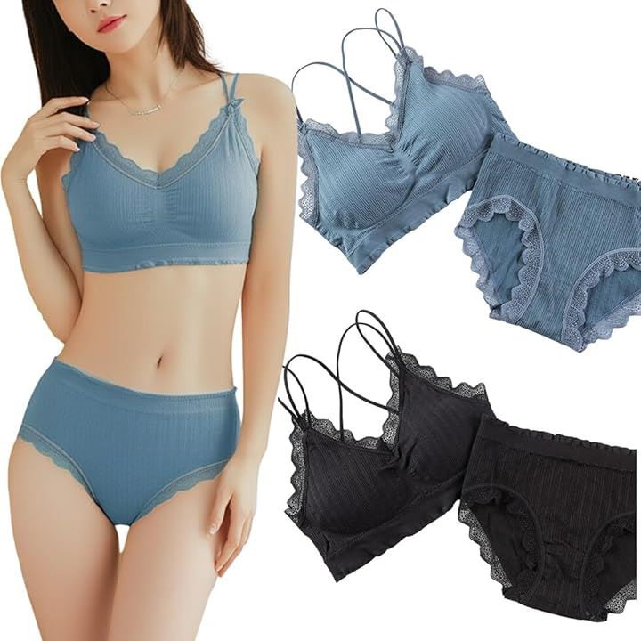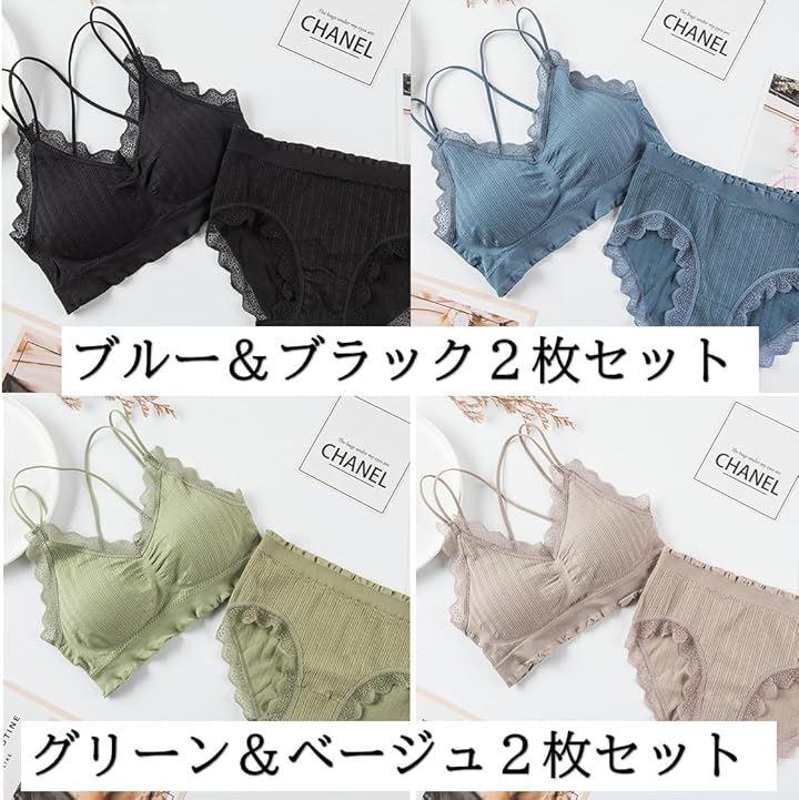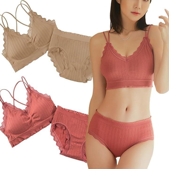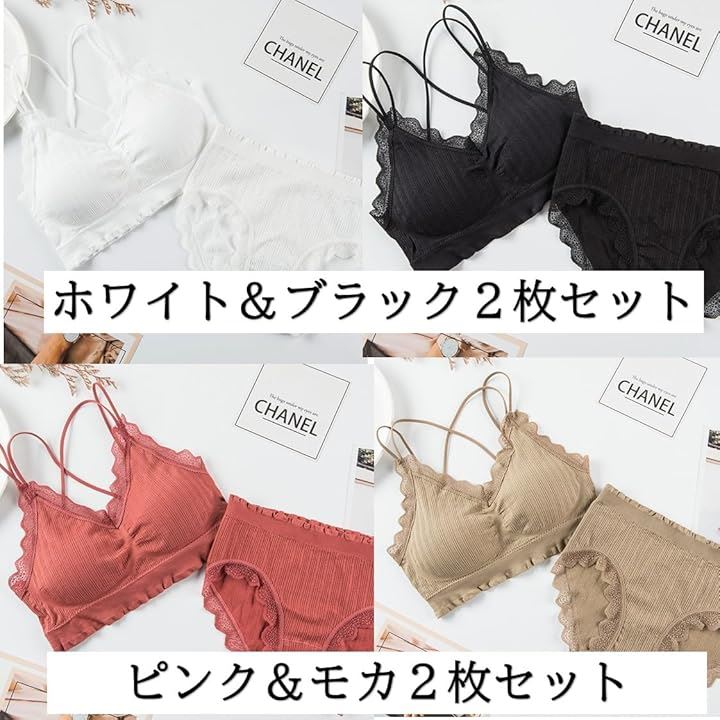下着 レディース 2枚 上下 セット ノンワイヤー ブラ レース ショーツ バッククロス