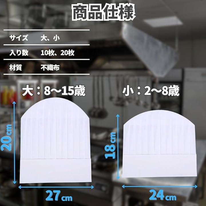 コック帽子 子供用 使い捨て シェフ ハット キッズ コックさん 料理教室 親子イベント クッキング体験 給食
