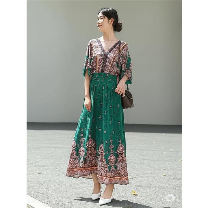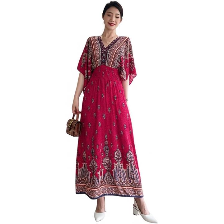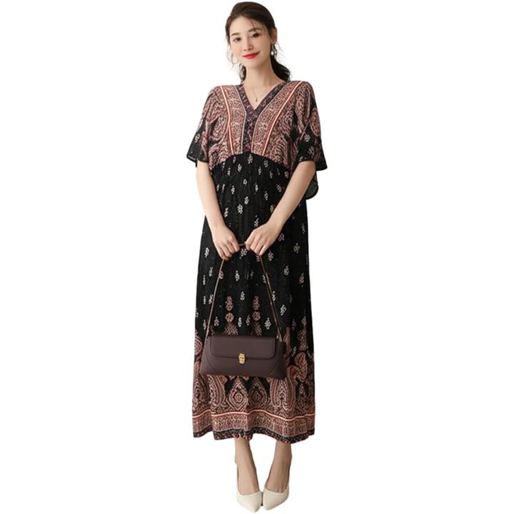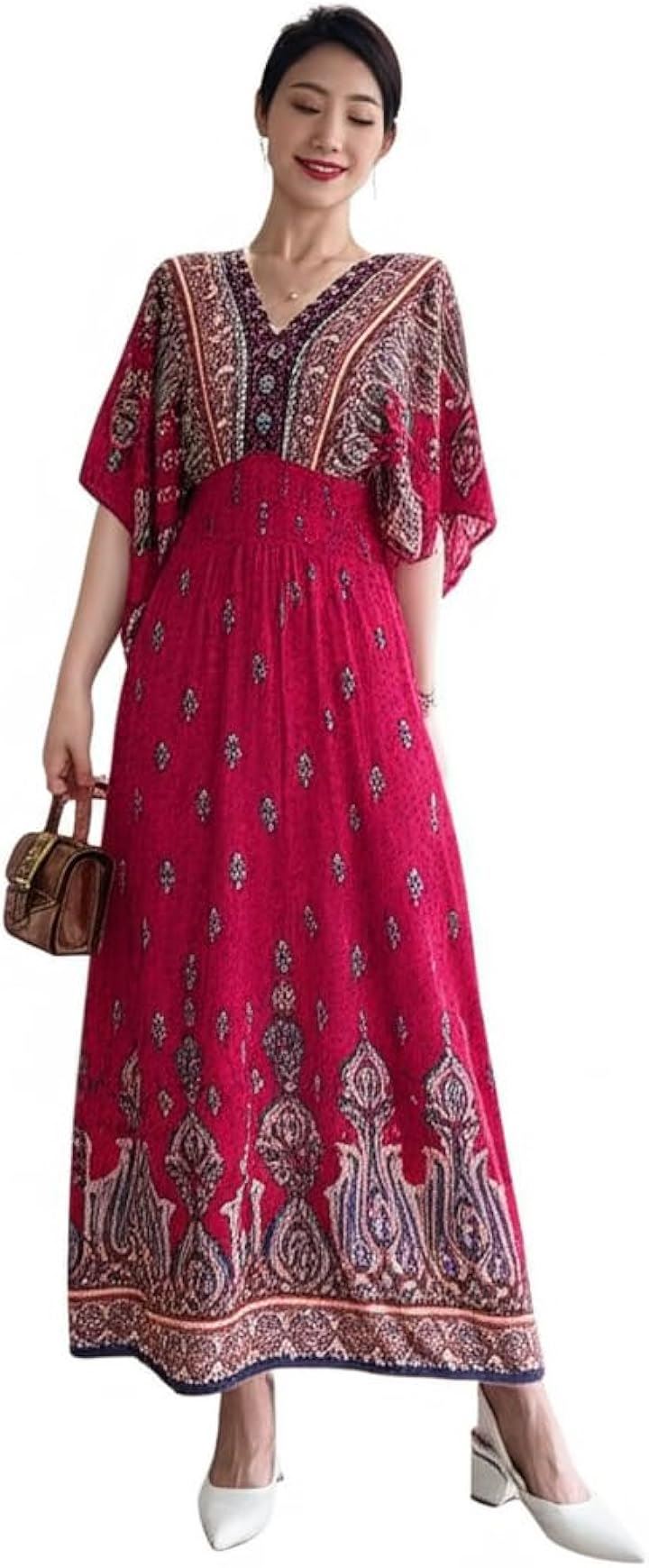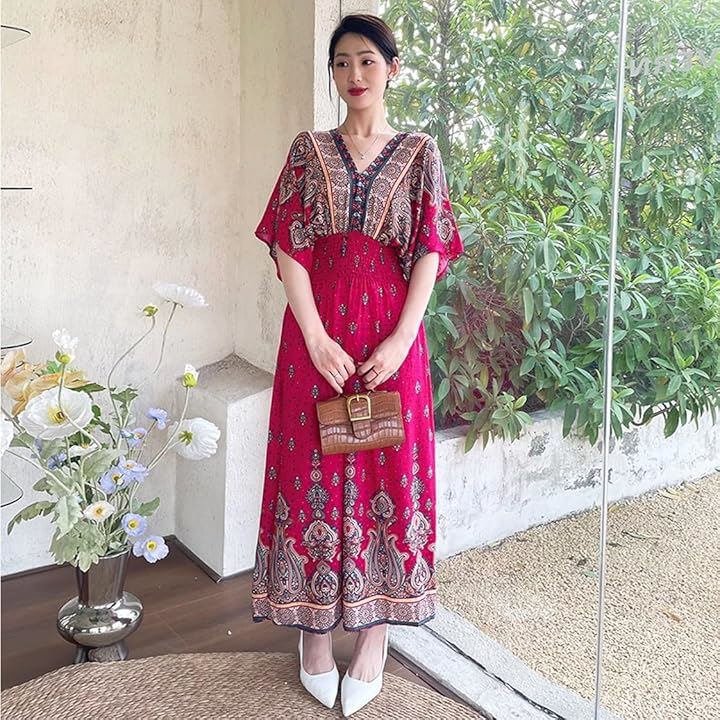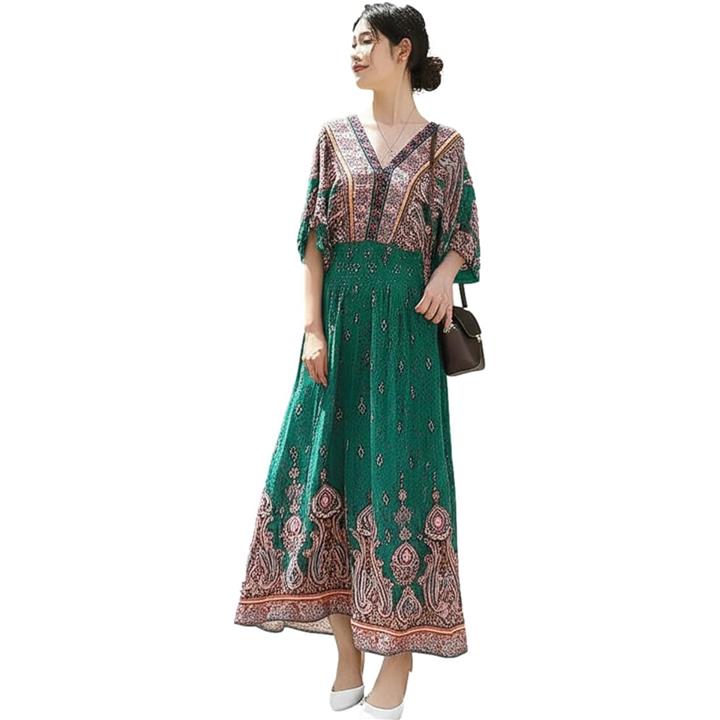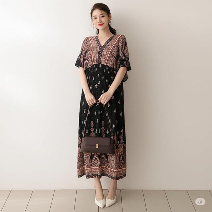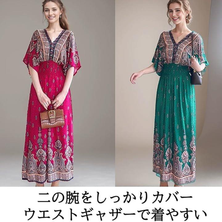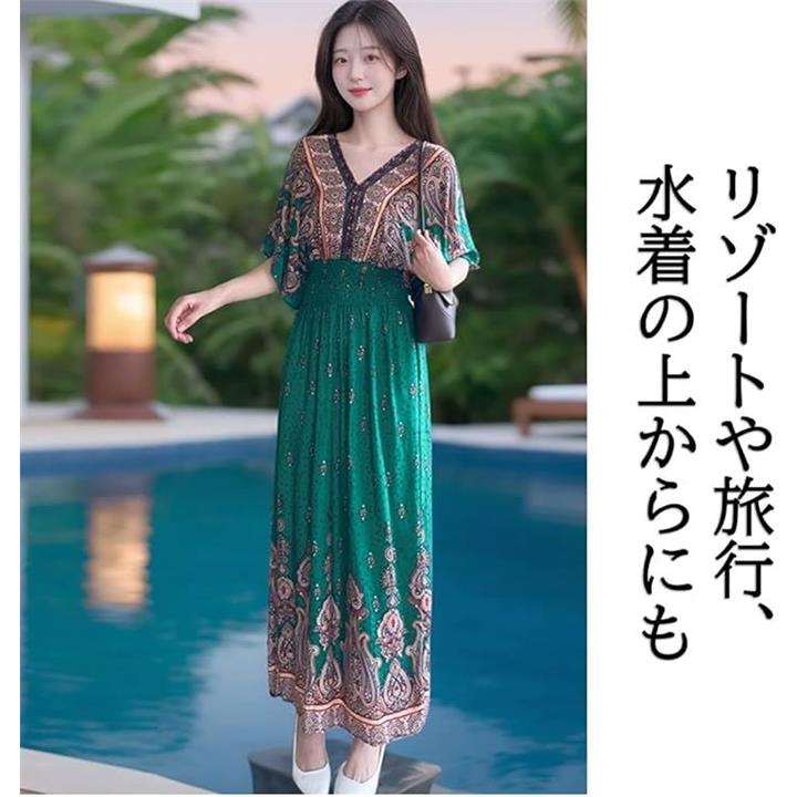 ワンピース レディース 半袖 ロング 体型カバー 夏 着痩せ 快適 ゆったり カジュアル かわいい 海 旅行 リゾート フリーサイズ