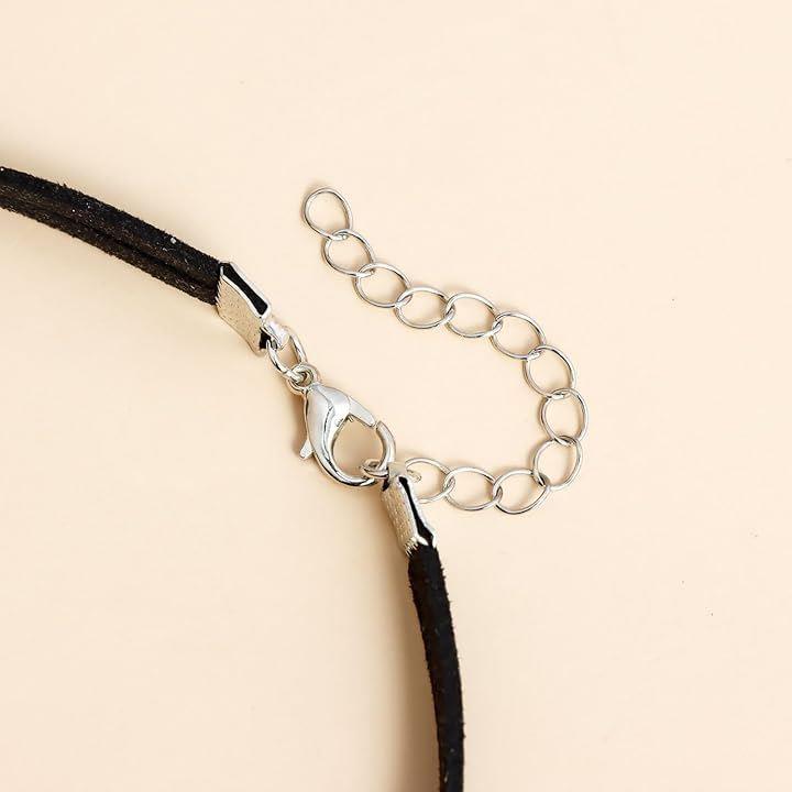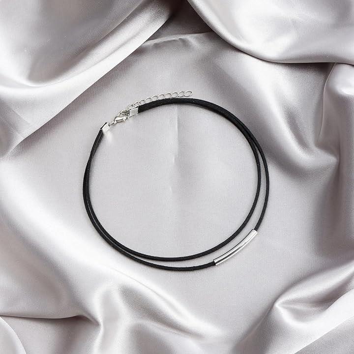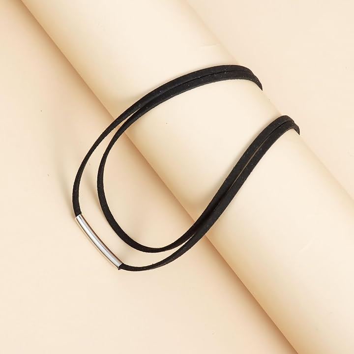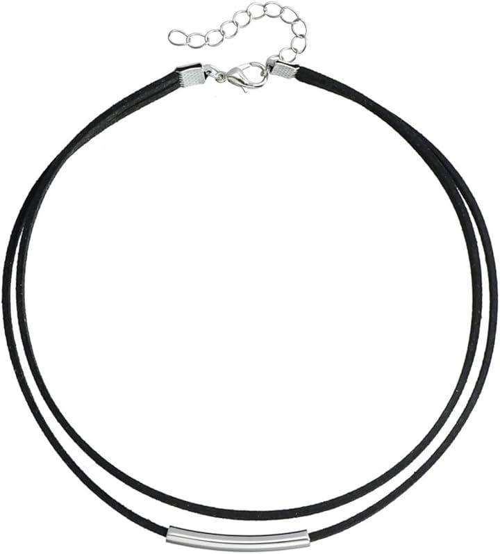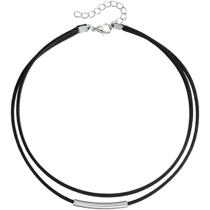 チョーカー ネックレス レディース 紐 ブラック ダブル 二重 メタルバー シンプル アクセサリー 調整可能