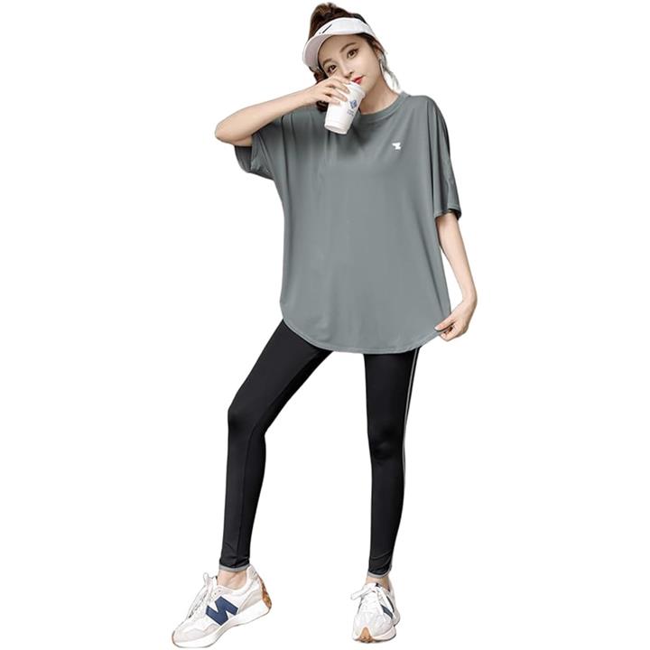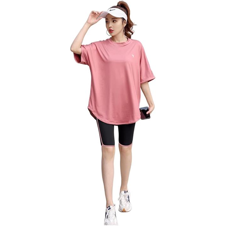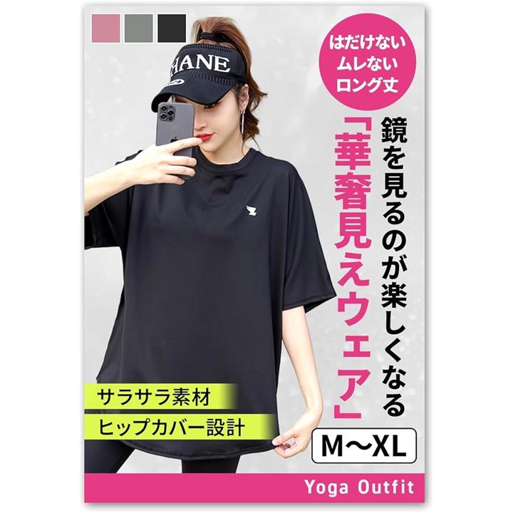 ヨガウェア トップス レディース ピラティス スポーツ フィットネス ホットヨガ ジム Tシャツ 速乾 上 体型カバー ロング丈 5分袖 ゆったり はだけない ムレない 華奢