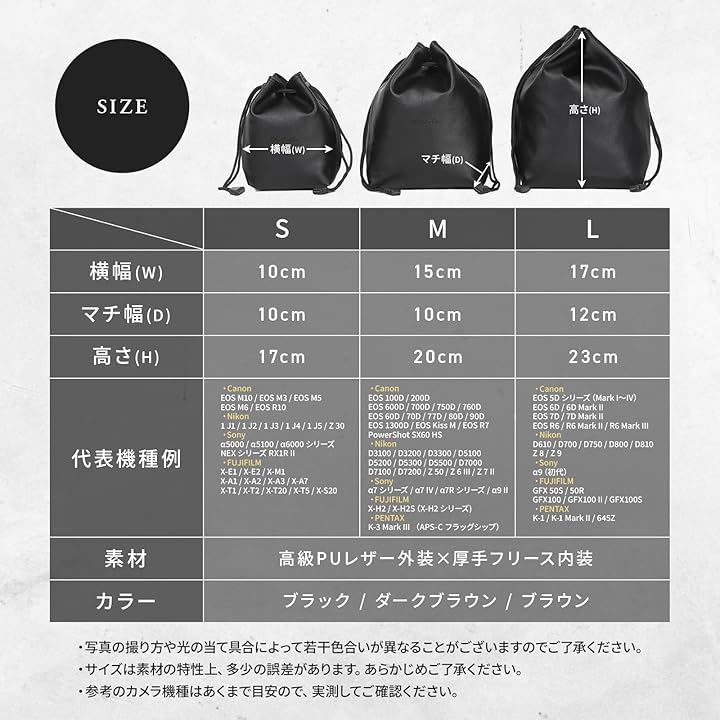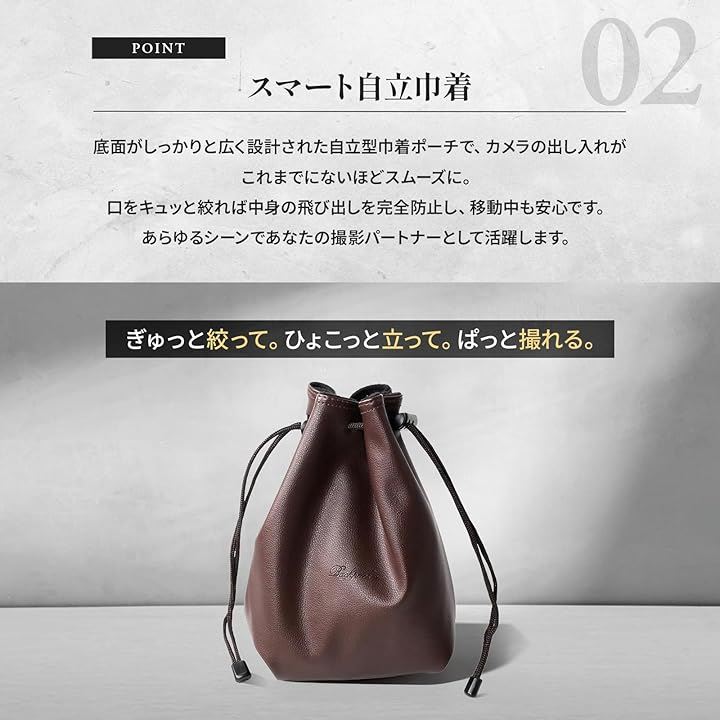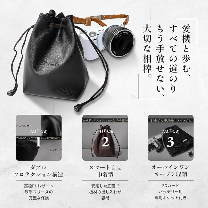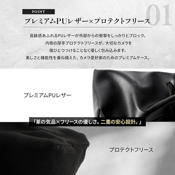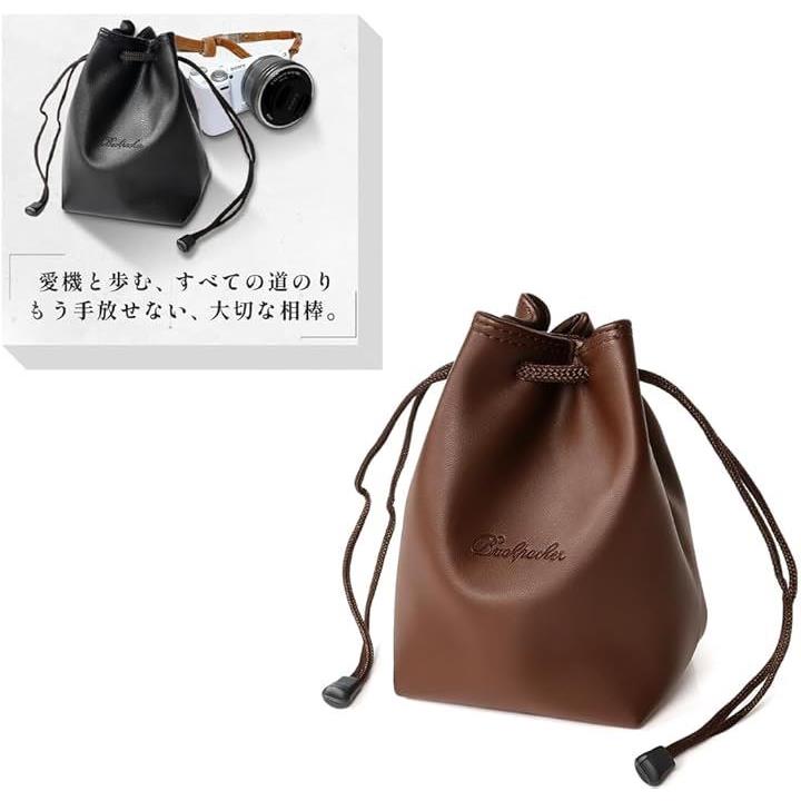 カメラバッグ カメラケース カメラポーチ 軽量 巾着 小型 インナーバッグ 裏地 フリース 一眼レフ レザー