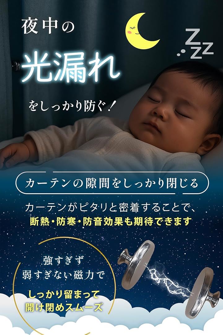 睡眠環境アドバイザー監修 カーテン マグネット 隙間防止 光漏れ 磁石 留め具 強力 5個セット