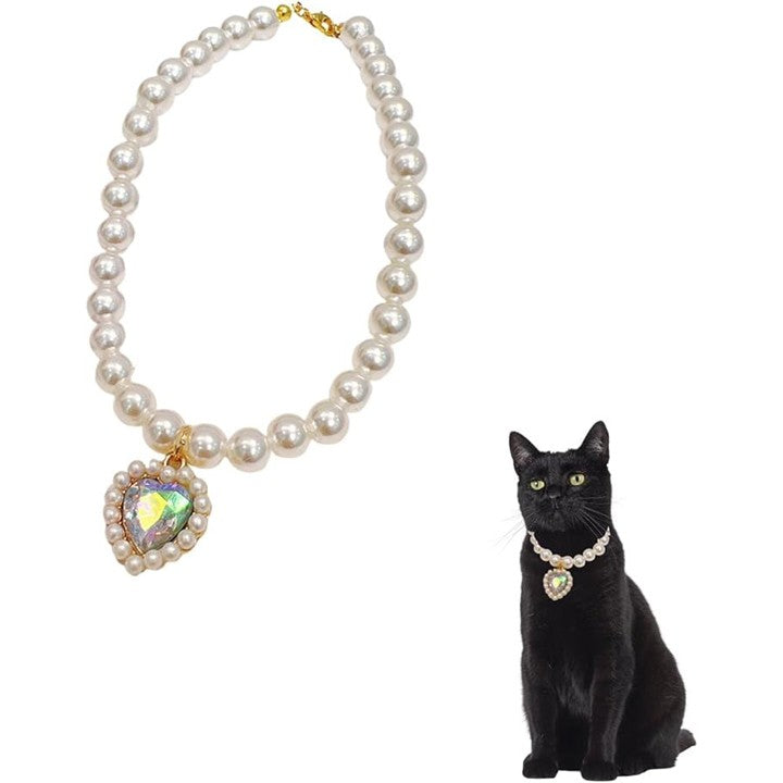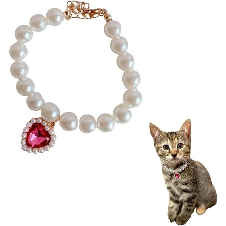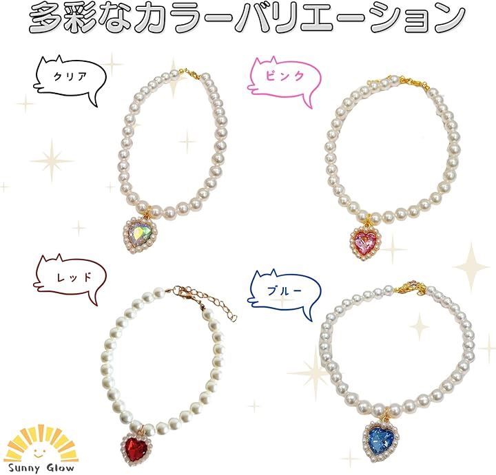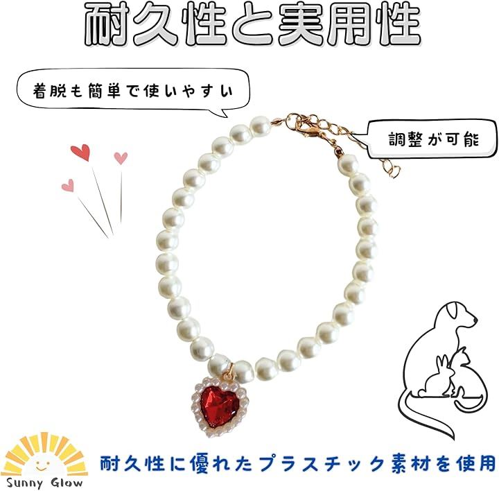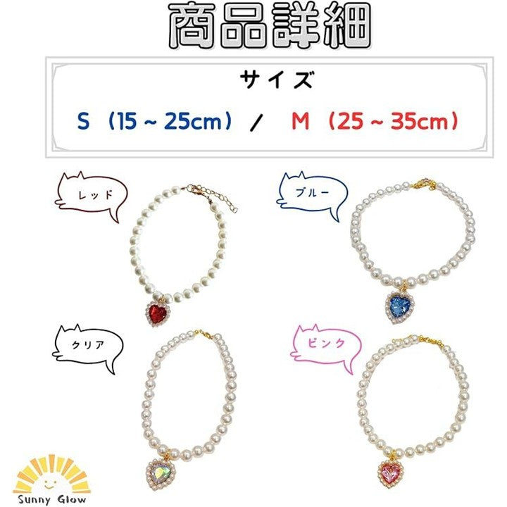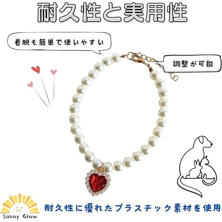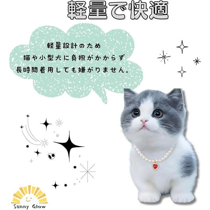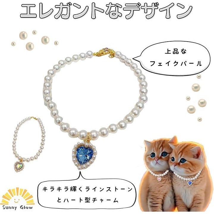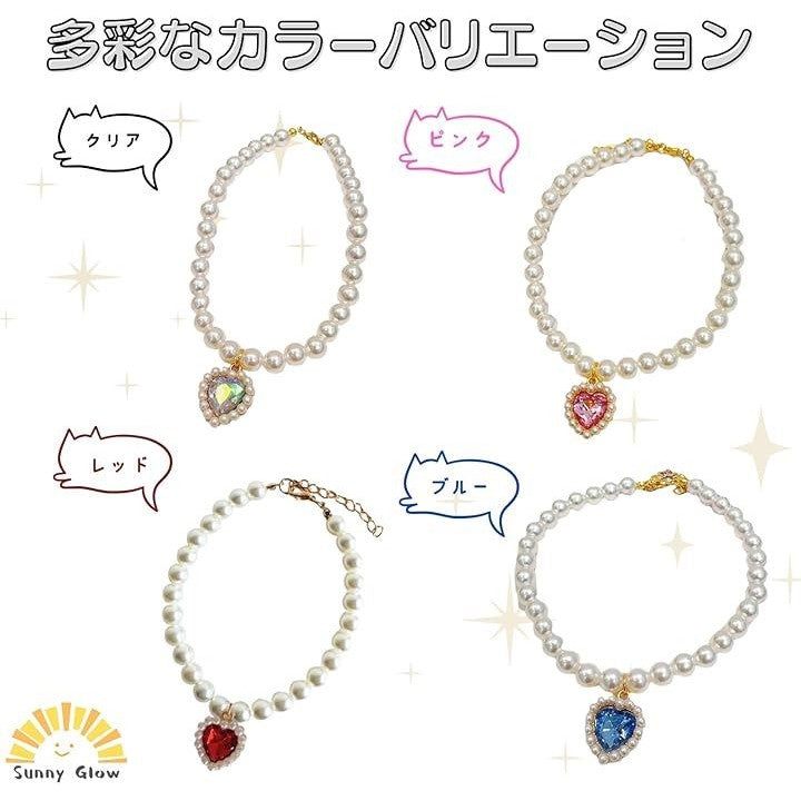ペット 首輪 フェイクパール ネックレス 猫 小型犬用 ジュエリー ハート チャーム付き ラインストーン 調節可能 アクセサリー
