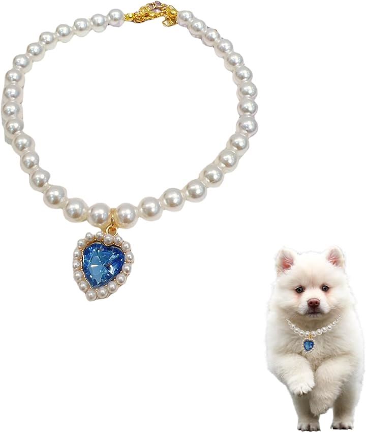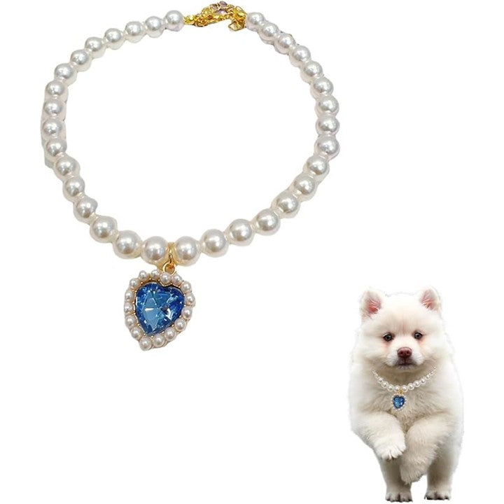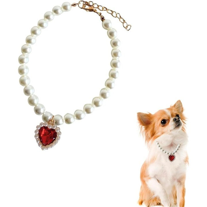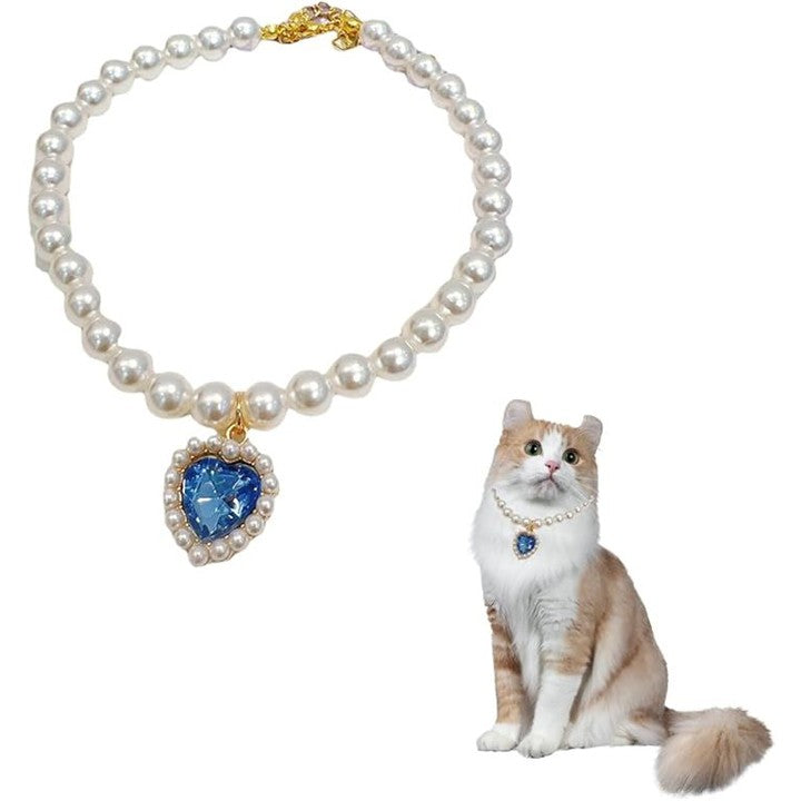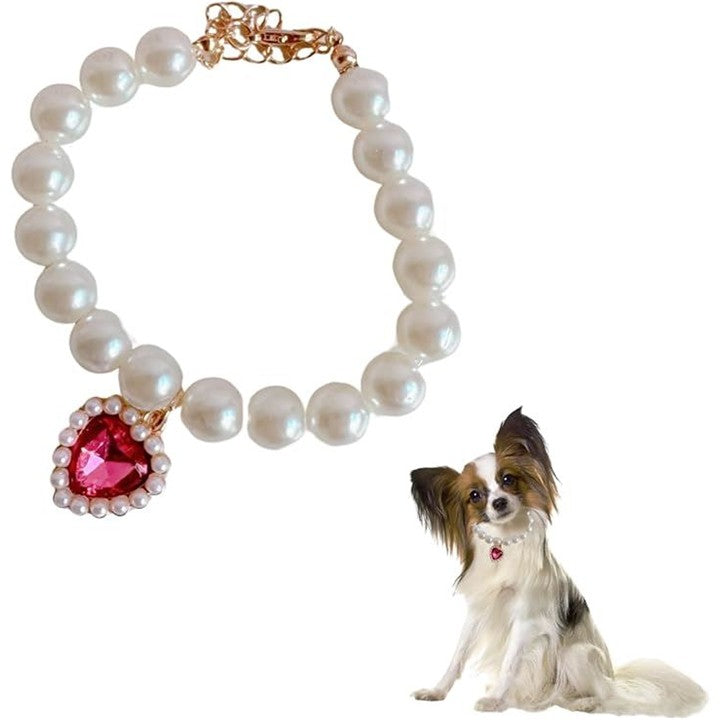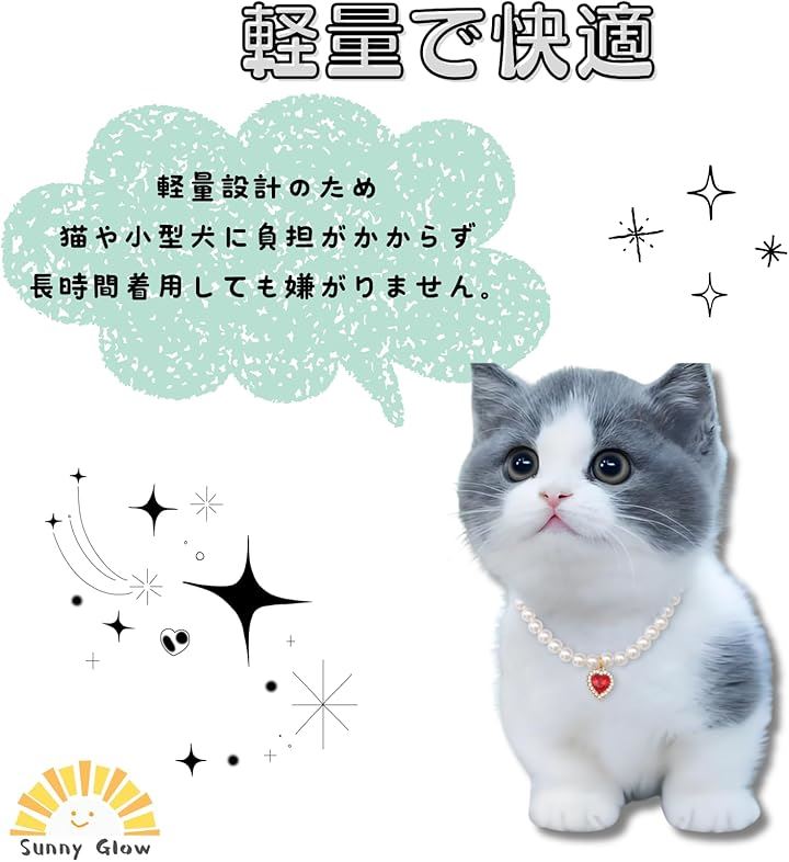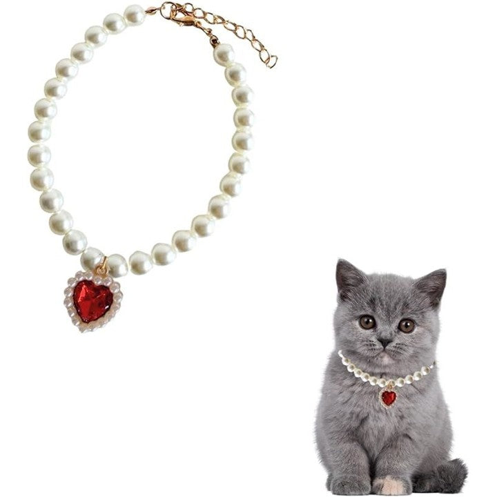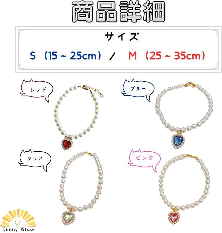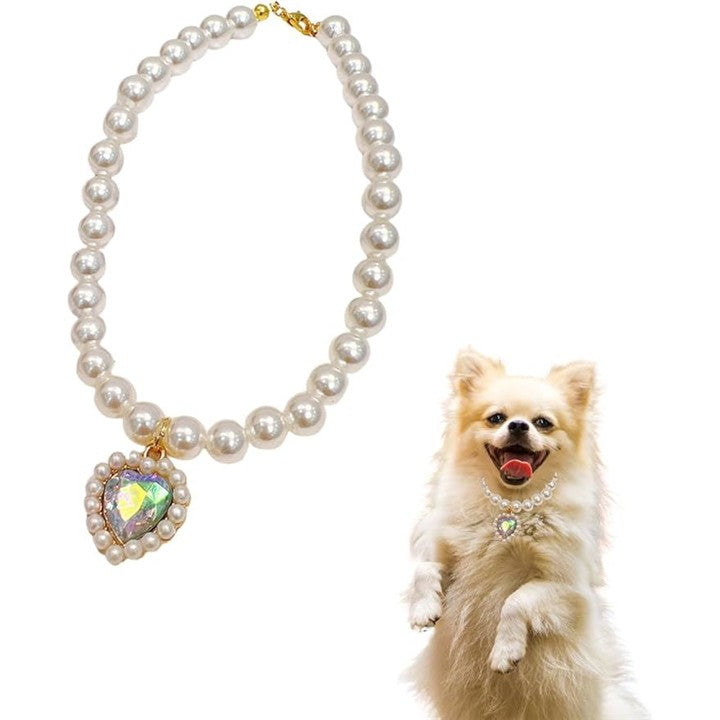 ペット 首輪 フェイクパール ネックレス 猫 小型犬用 ジュエリー ハート チャーム付き ラインストーン 調節可能 アクセサリー