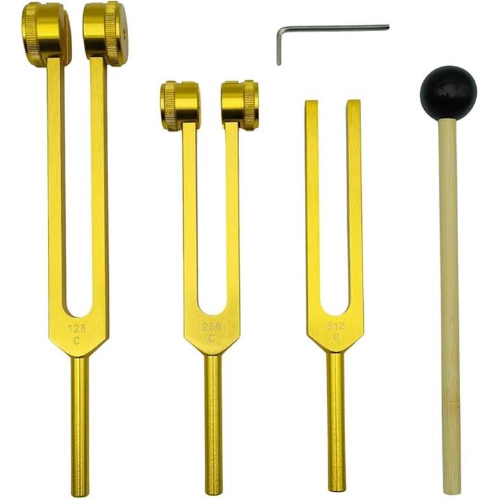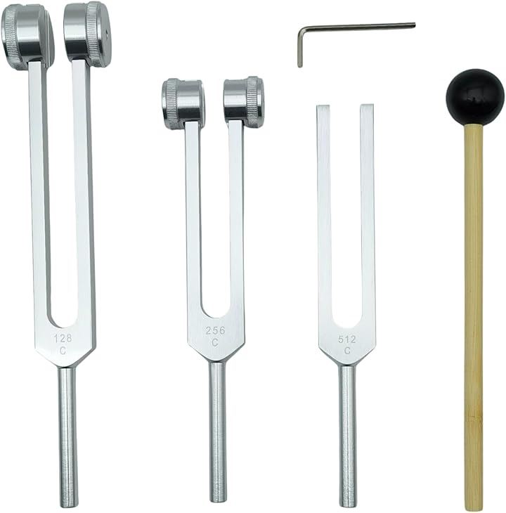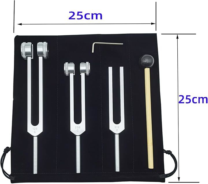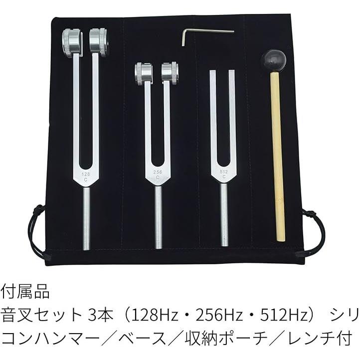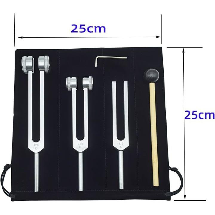 音叉セット 3本 128Hz・256Hz・512Hz シリコンハンマー/ベース/収納ポーチ/レンチ付 アルミ合金 チューニングフォーク 音楽学習・調律・理科実験・サウンドデザイン