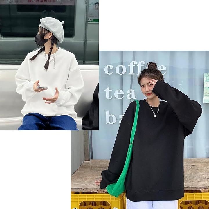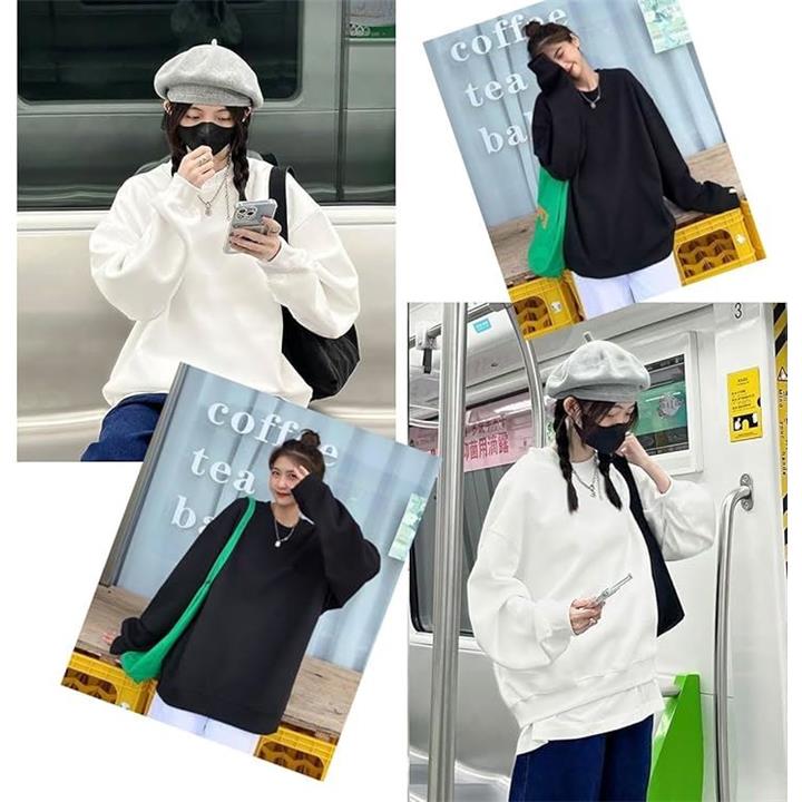 トレーナー レディース スウェット クルーネック 長袖 ゆったり トップス 無地 シンプル 丸襟 プルオーバー インナー アウター ルームウェア 通勤 通学 春 秋 オーバーサイズ おしゃれ ロング 可愛い 体型カバー 着痩せ 着回し ビッグシルエット