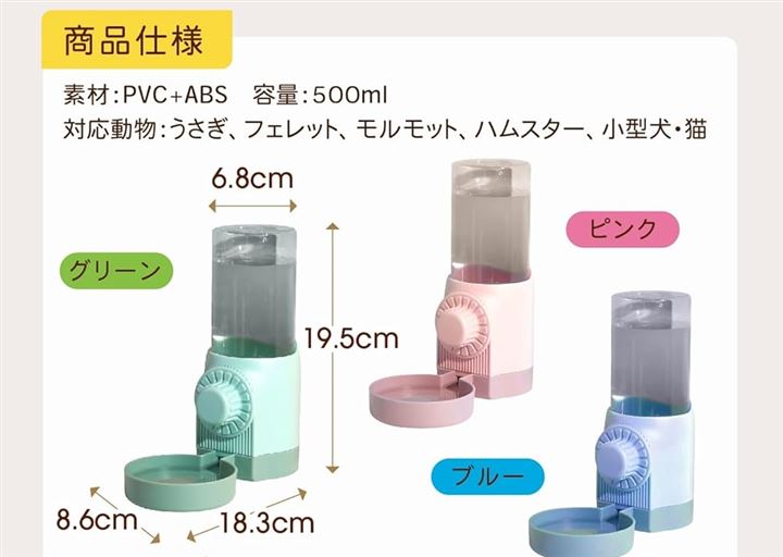 うさぎ 水飲み 給水器 ボトル 小動物 ハムスター ケージ 水入れ チモシー モルモット 犬 フェレット ペット