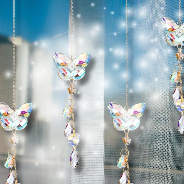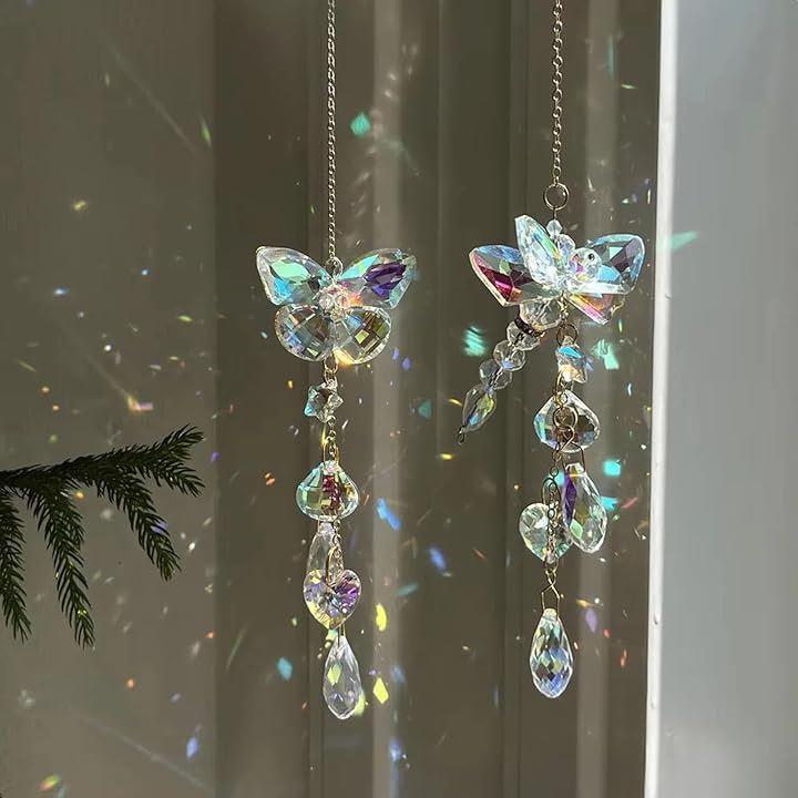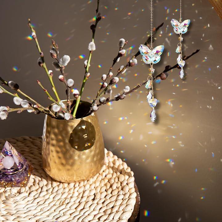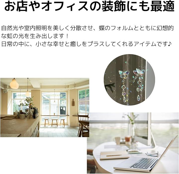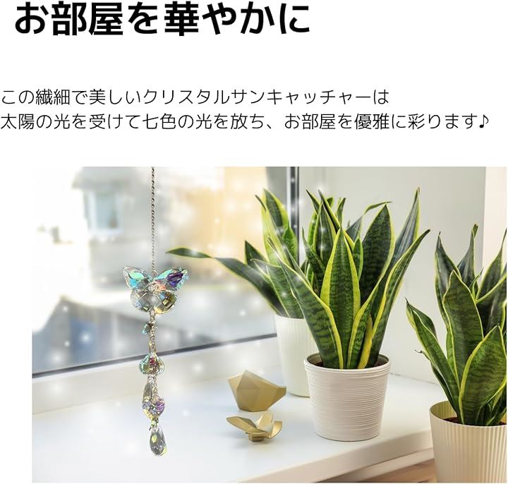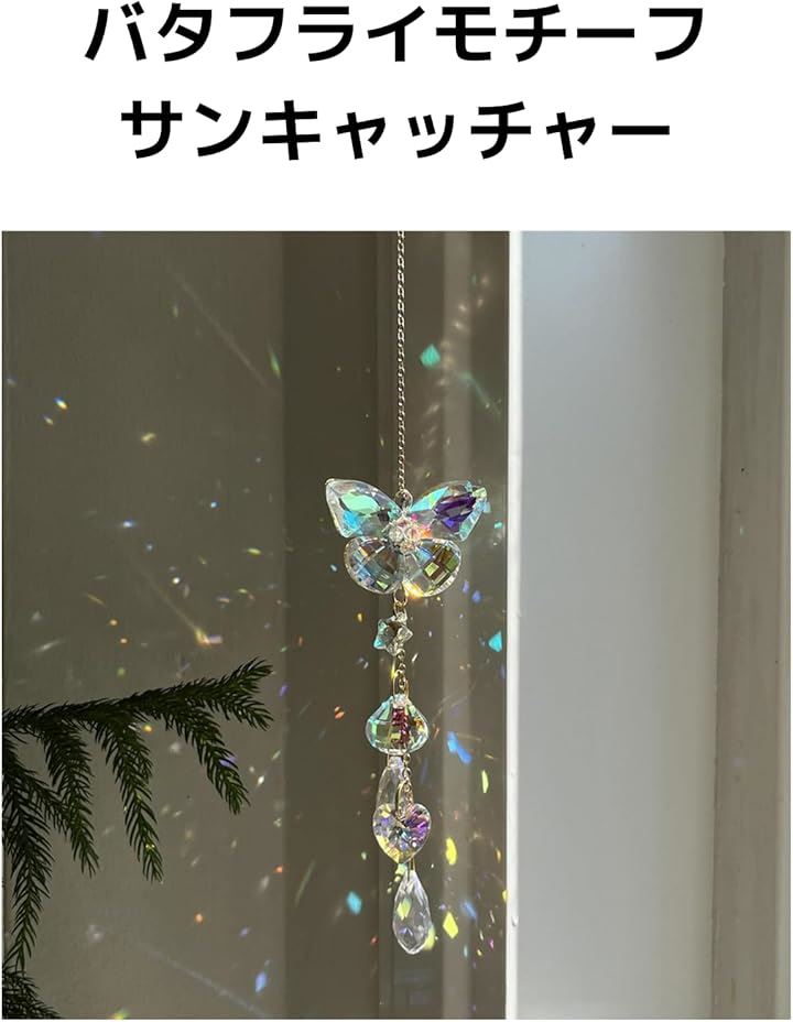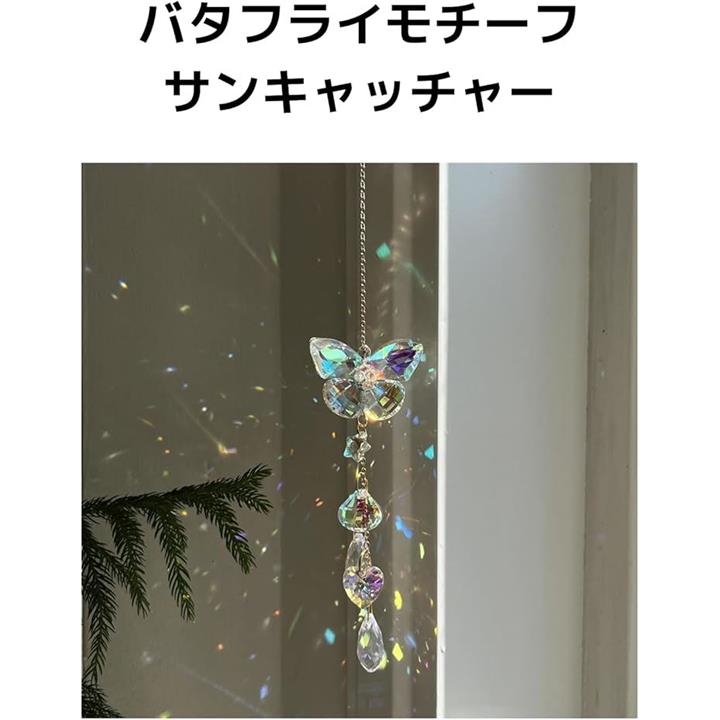 サンキャッチャー キット 水晶 クリスタル 置き型 ハンギングオーナメント スタンド 蝶 インテリア 窓用 レインボー K9クリスタル 虹が出る飾り