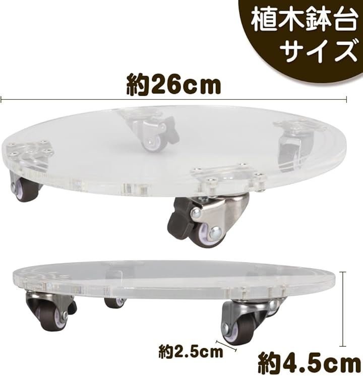 フラワースタンド プランタースタンド 鉢置き台 キャスター付き ストッパー機能付き 植木鉢台 観葉植物鉢置台 アクリル製 26cm