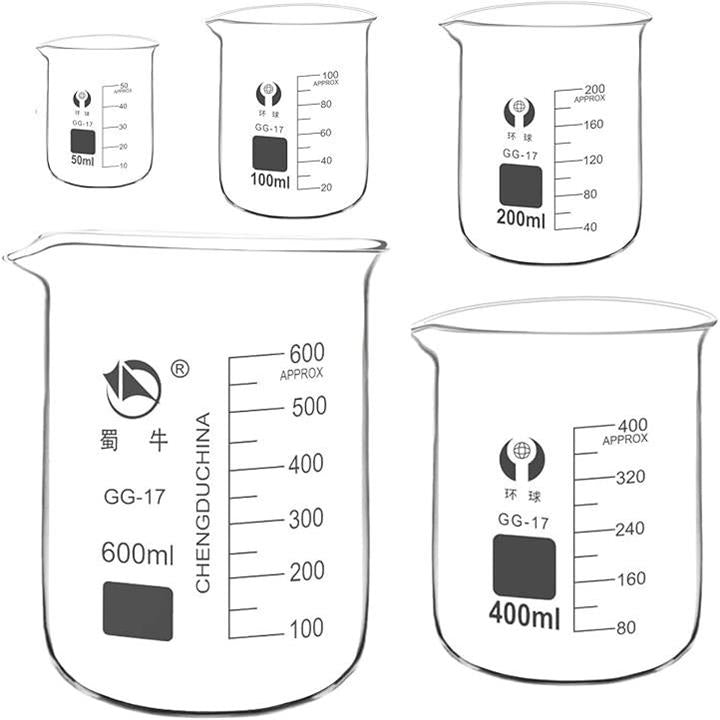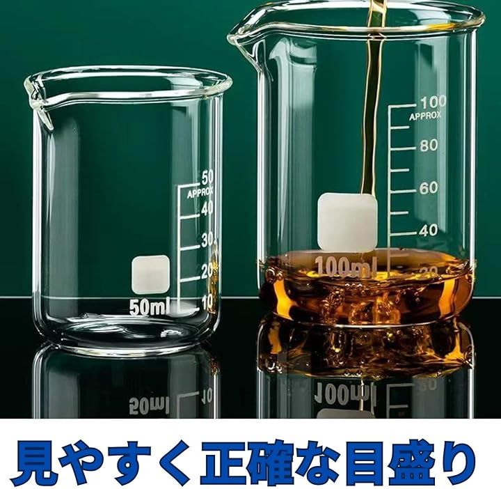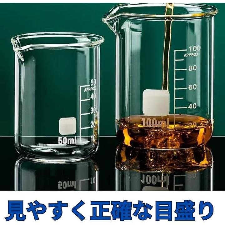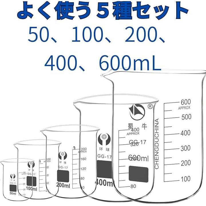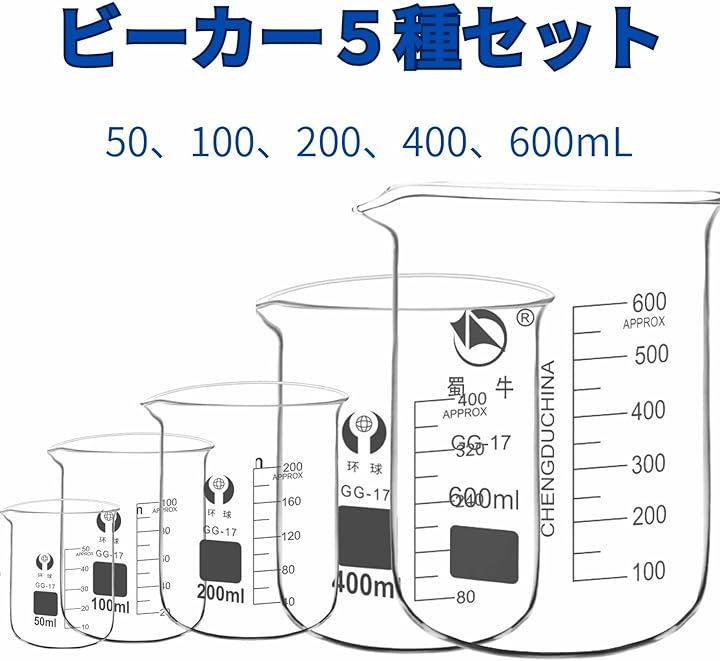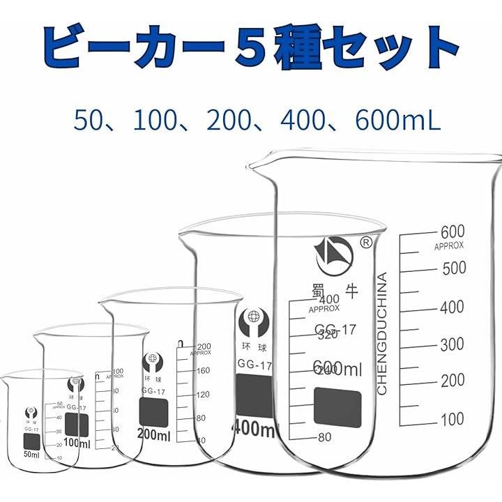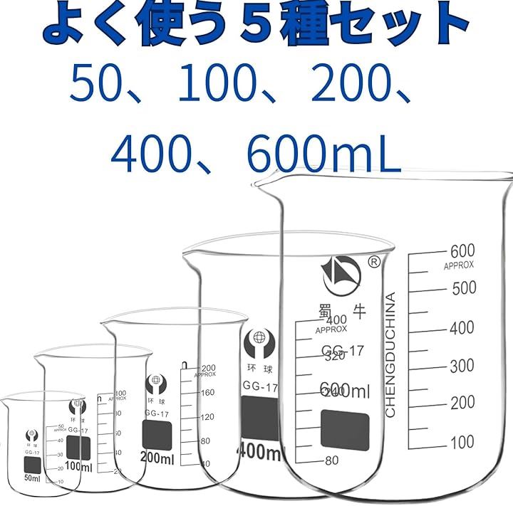 ビーカー 実験用品 実験器具 耐熱ガラス 計量器 メジャーカップ 計量カップ ガラス製 5種セット 耐熱性 使いやすいビーカーセット