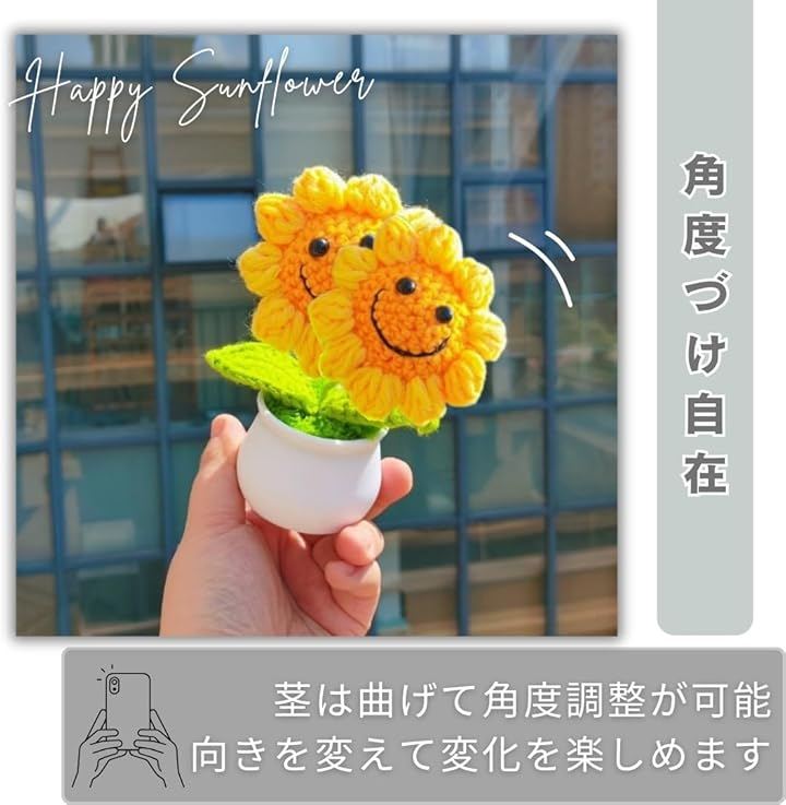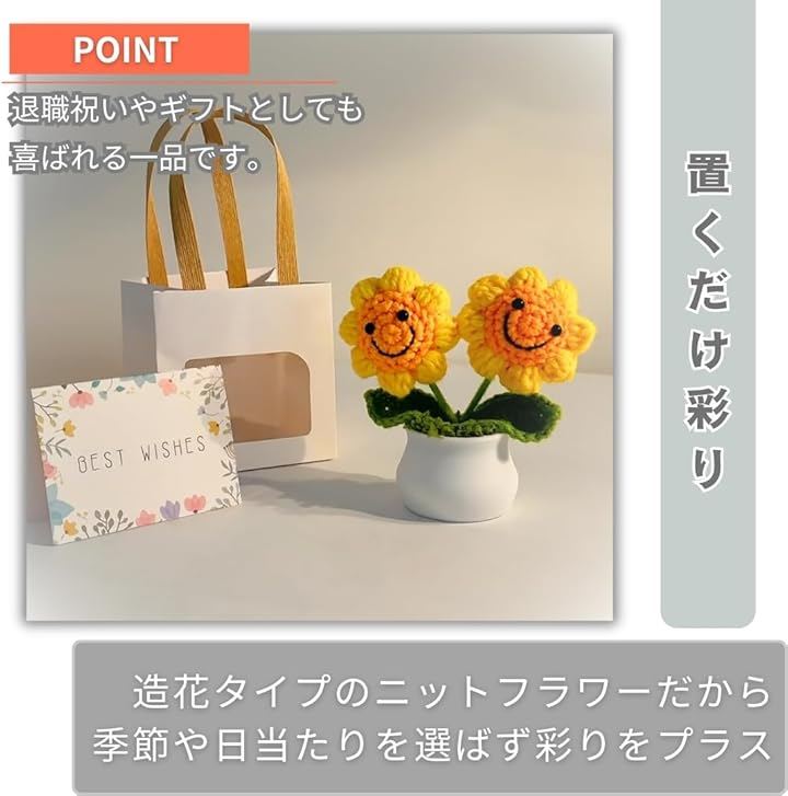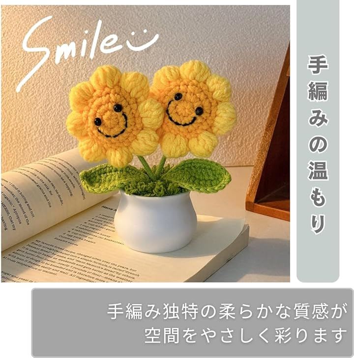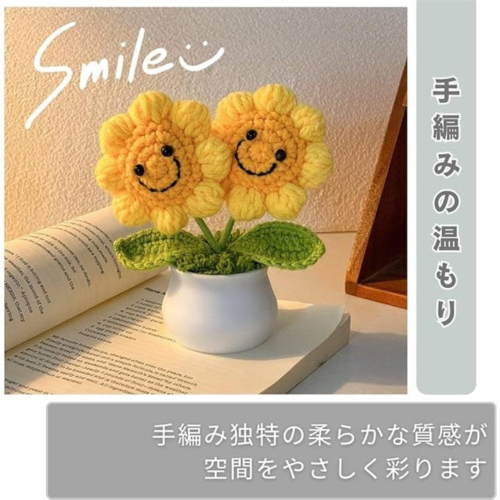 ひまわり 造花 手編み スマイル 笑顔 置物 インテリア かわいい 雑貨 飾り