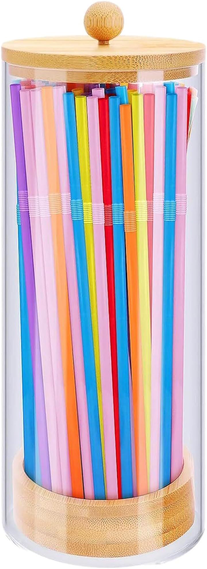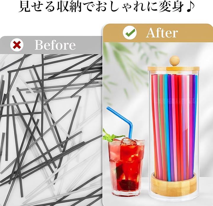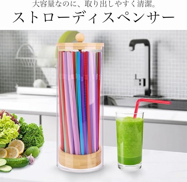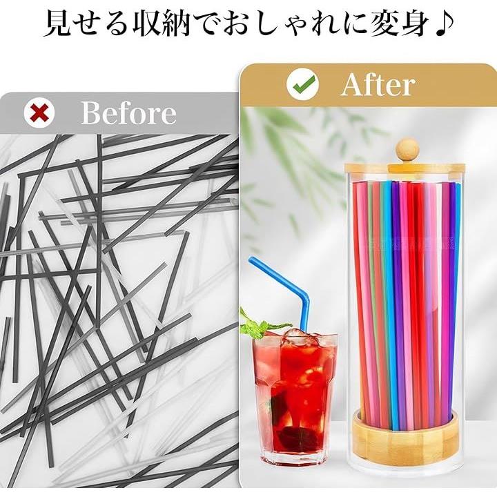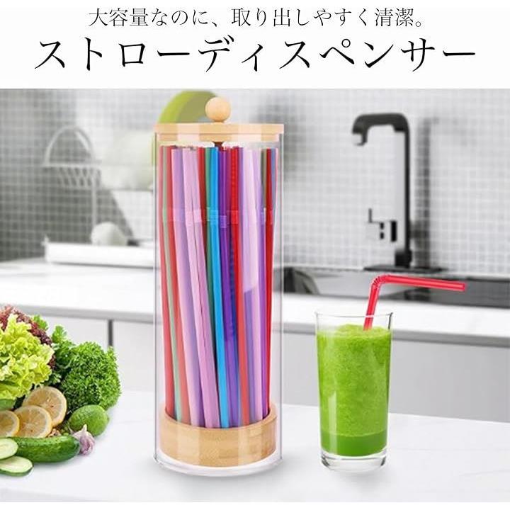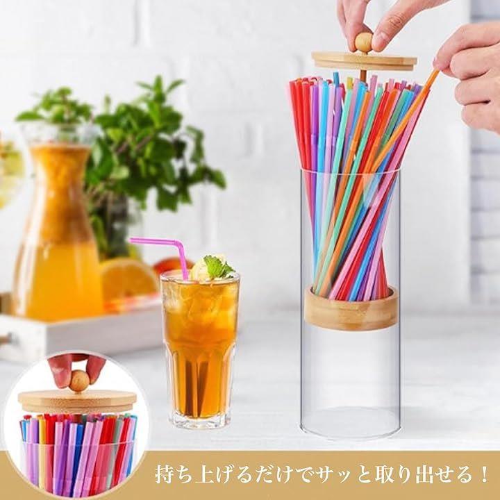 ストロー ディスペンサー 大容量 収納 ケース 竹蓋 ストロー立て おしゃれ 見せる収納 アクリル ホルダー 容器 透明 100本収納 キッチン 台所 小物 卓上 衛生的